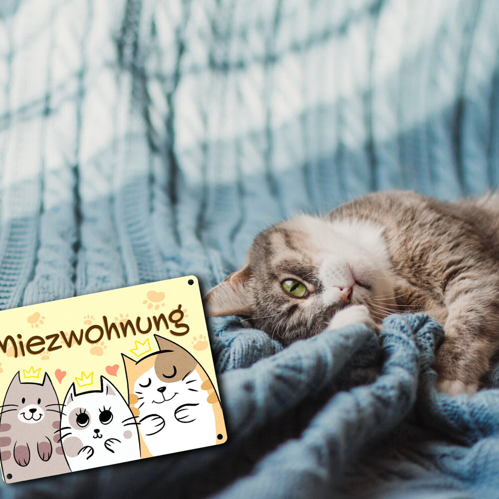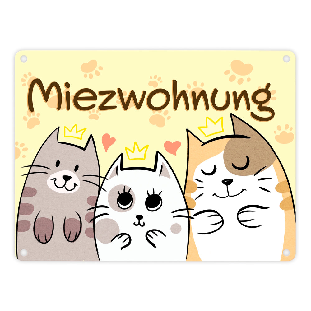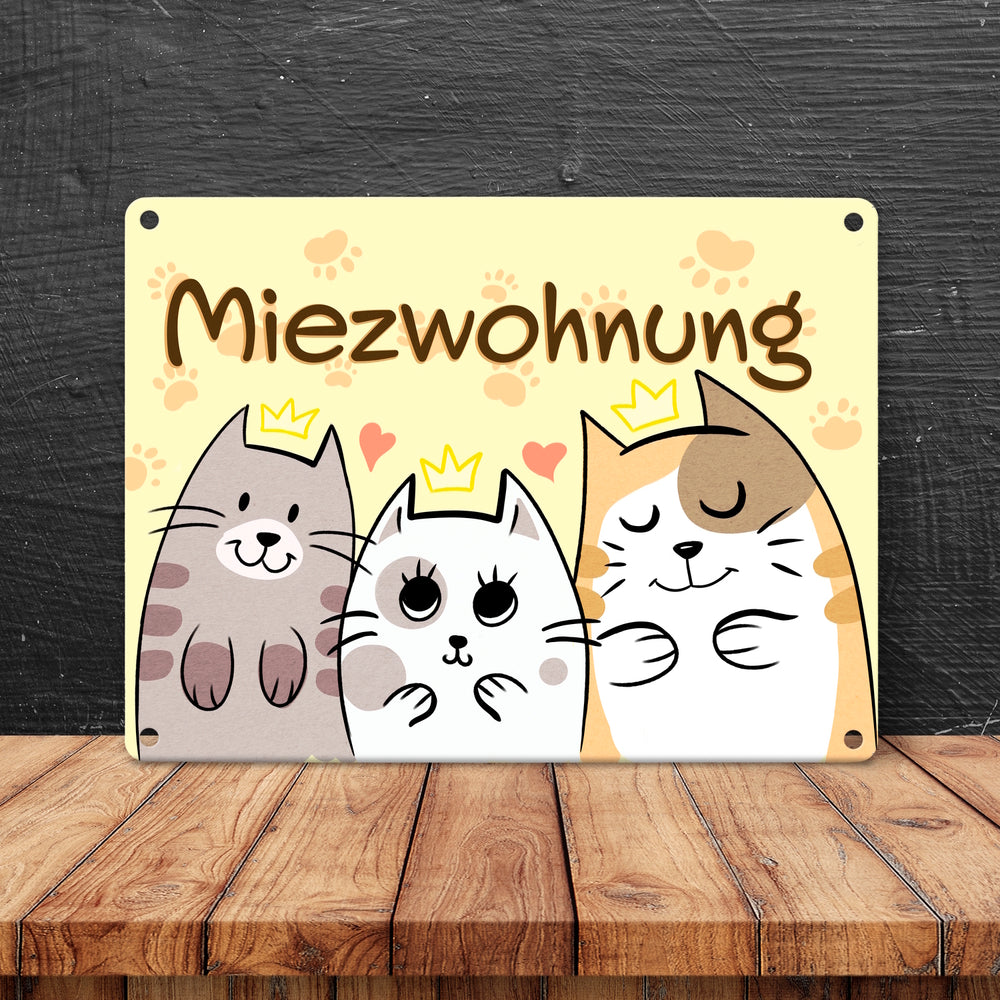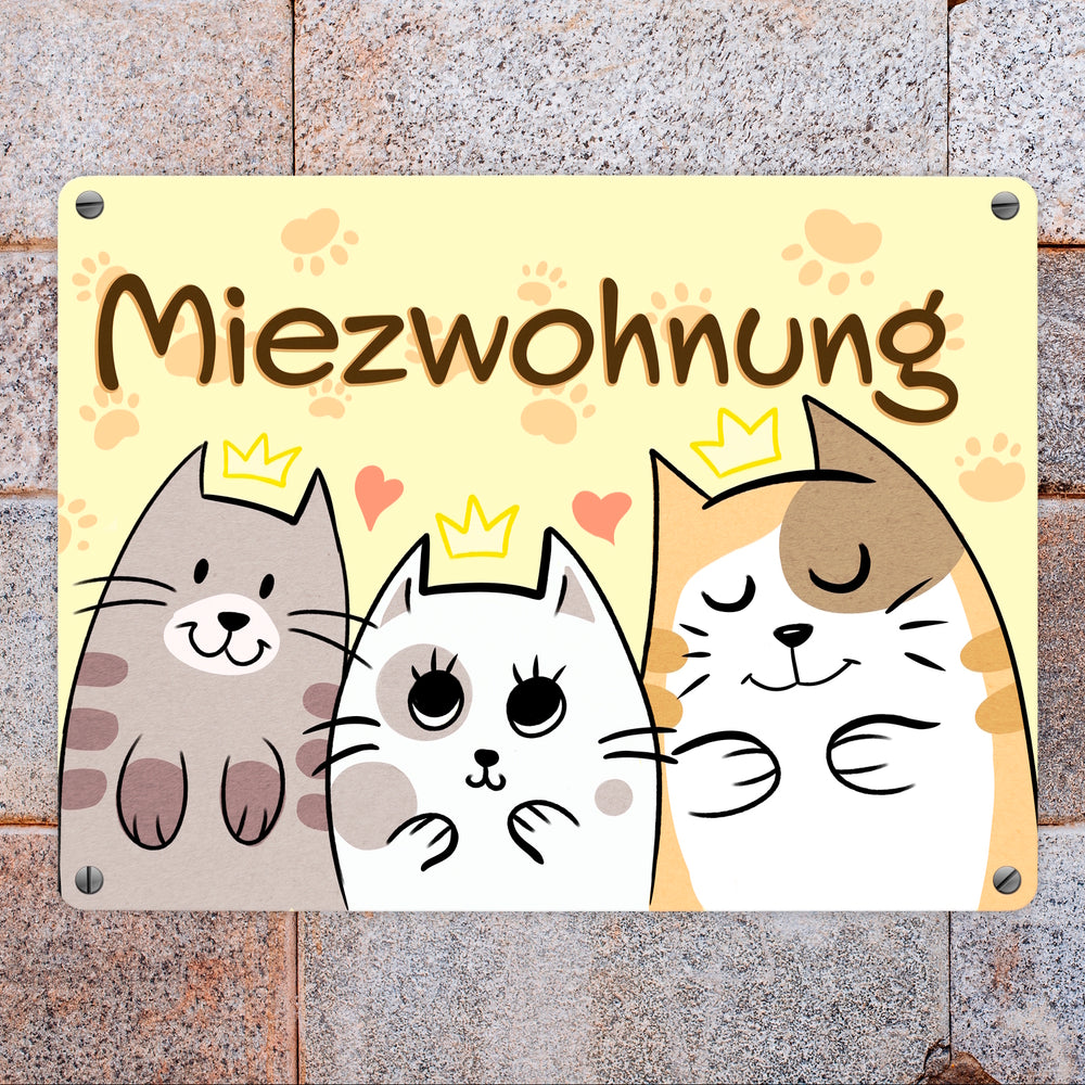 - 1x Miezwohnung Metallschild mit drei süßen Katzen für alle Katzenfreunde in der gewählten Größe