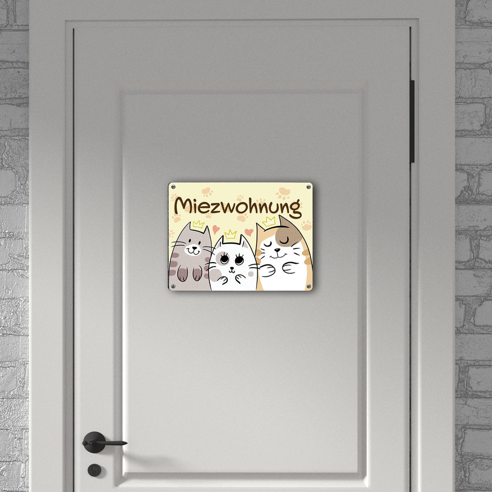 Miezwohnung Metallschild mit drei süßen Katzen für alle Katzenfreunde