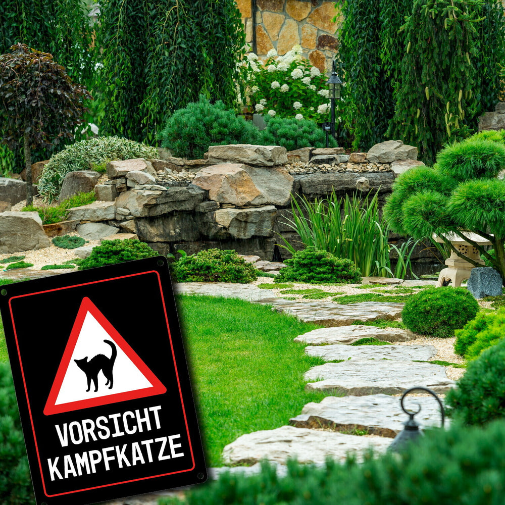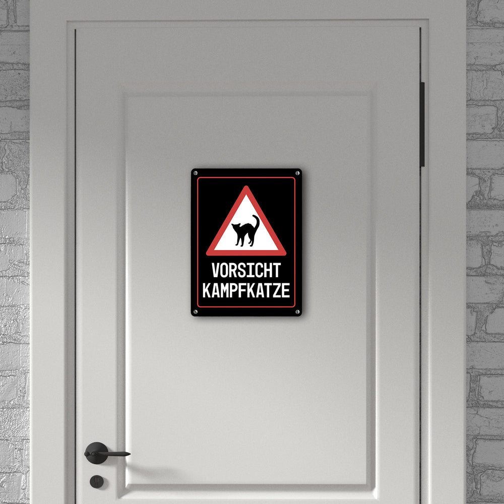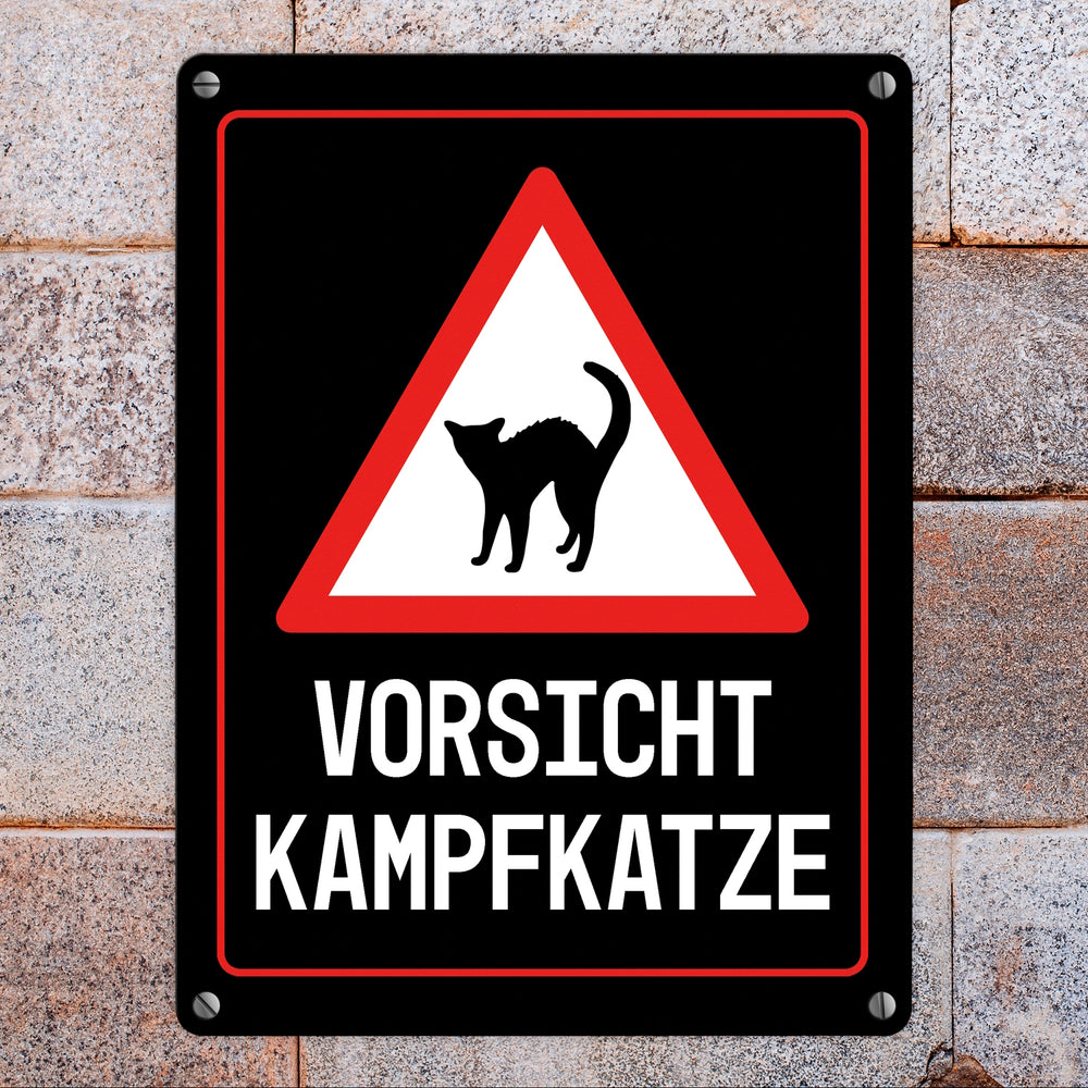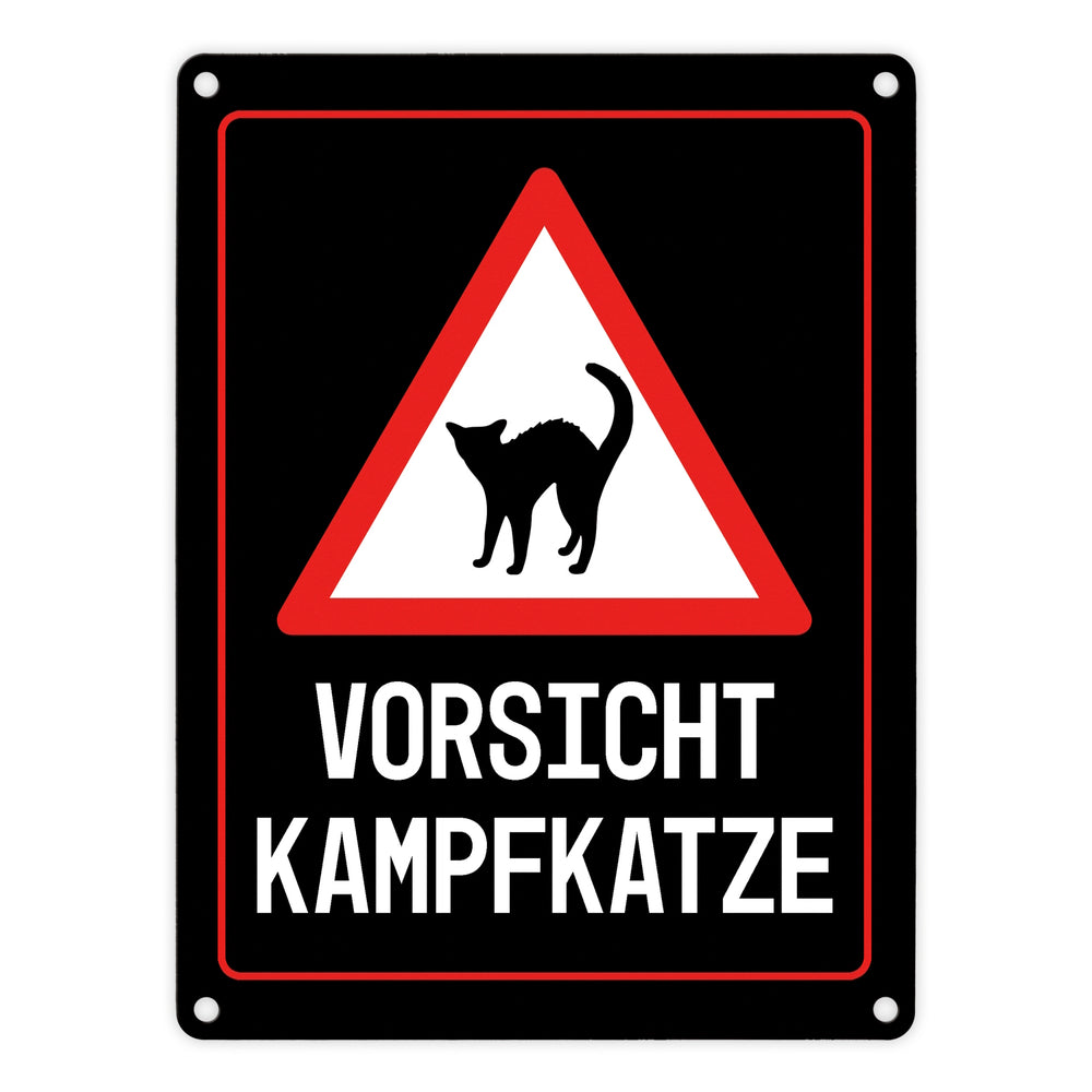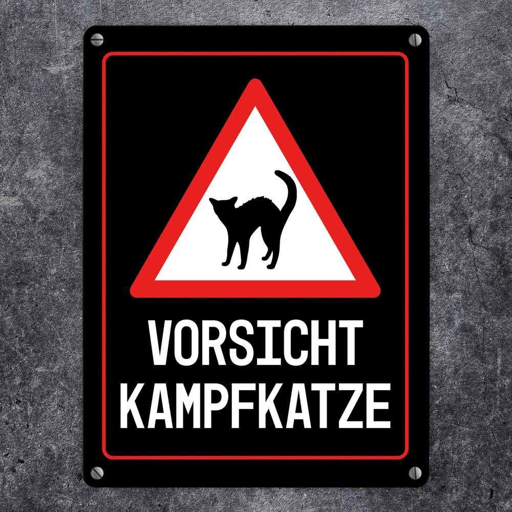 • Lieferumfang: 1x Vorsicht Kampfkatze Warn- und Hinweisschild in Schwarz mit Piktogramm