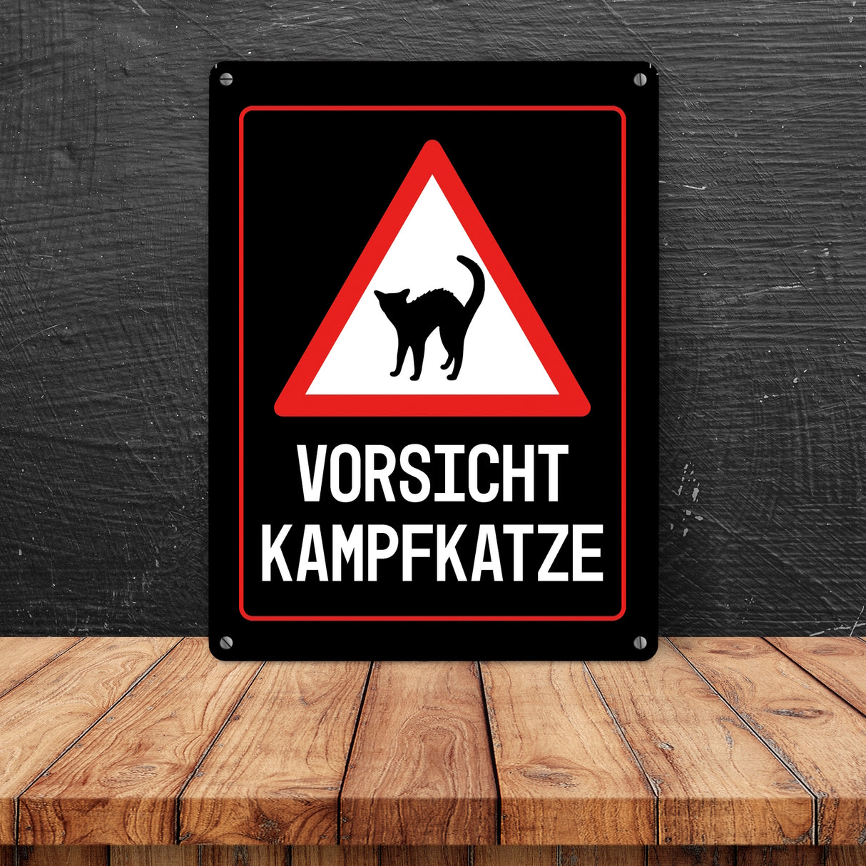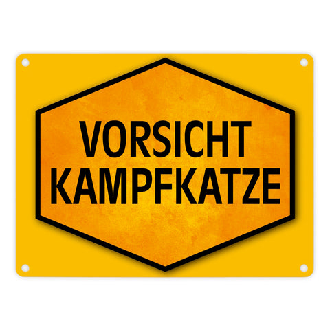 Vorsicht Kampfkatze Warn- und Hinweisschild im Used-Look