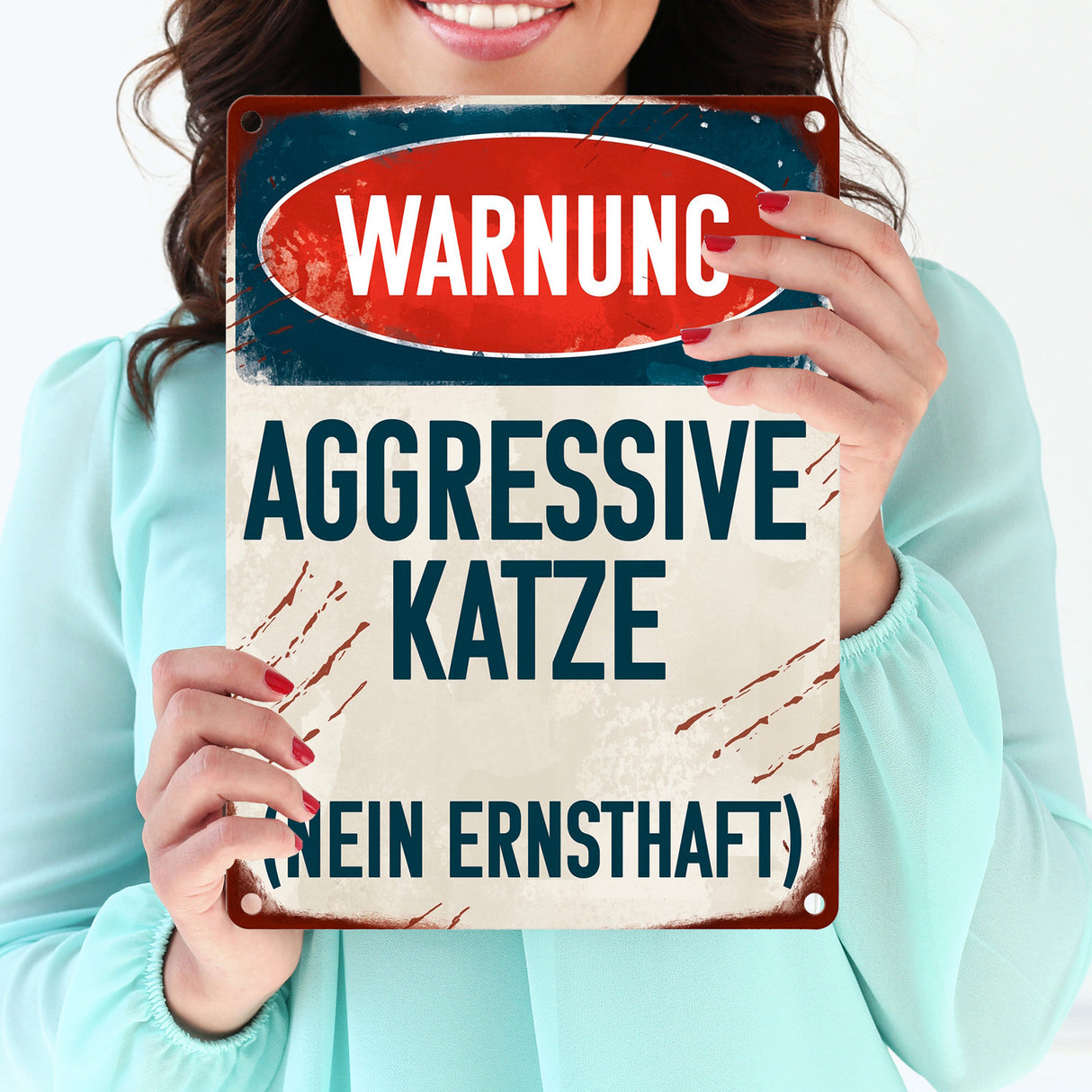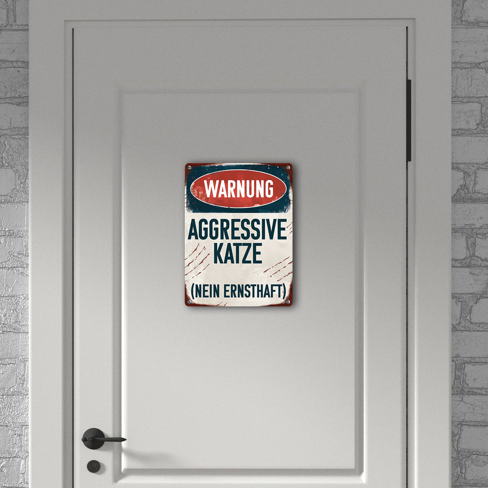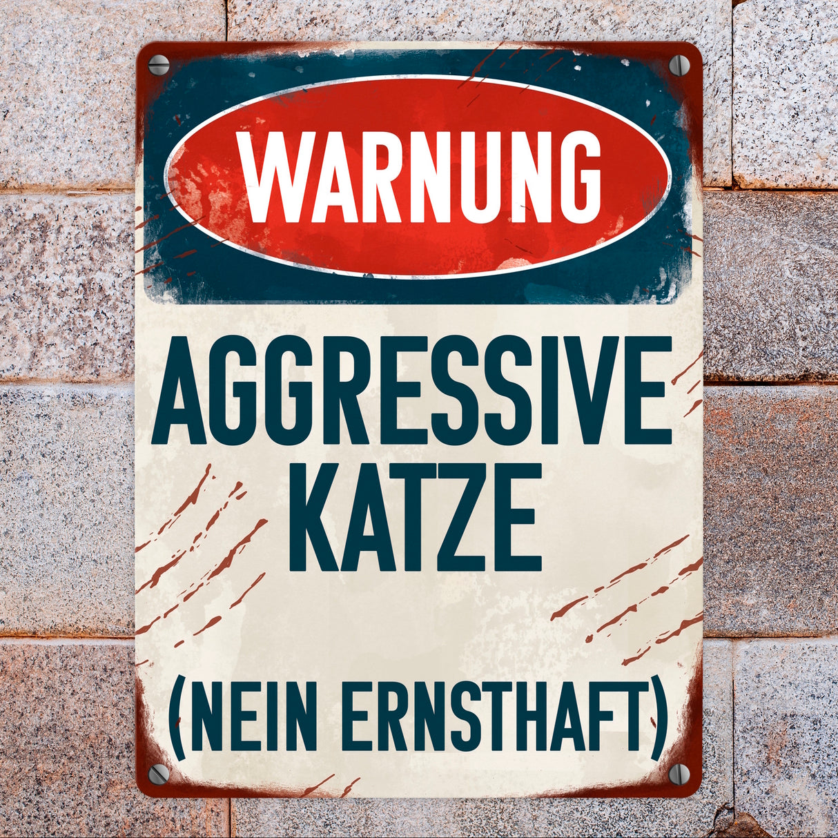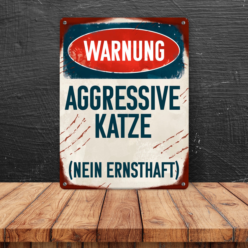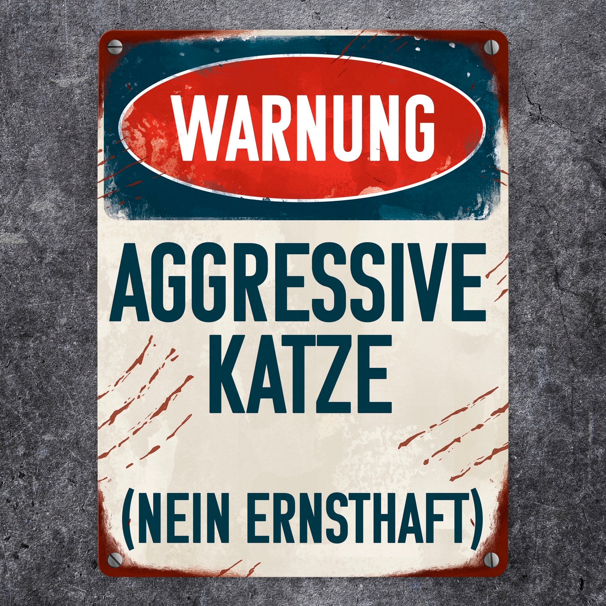 • 1x Warnung aggressive Katze (nein ernsthaft) Metallschild für Katzenhalter in der gewählten Größe