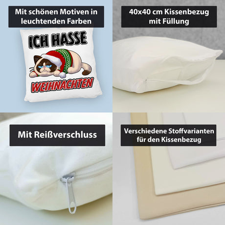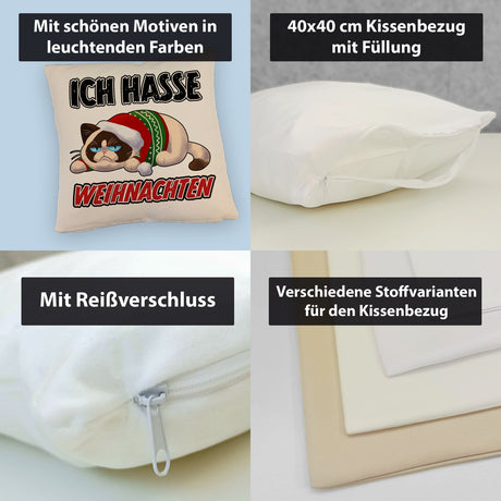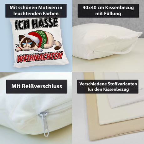 Ab €8,95Grundpreis /Nicht verfügbarAuf LagerGrimmige Katze Kissen mit Spruch Ich hasse Weihnachten