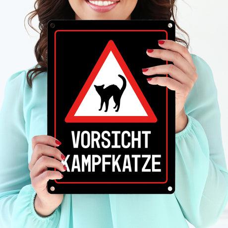 €11,49Grundpreis /Nicht verfügbar Vorsicht Kampfkatze Warn- und Hinweisschild in Schwarz mit Piktogramm