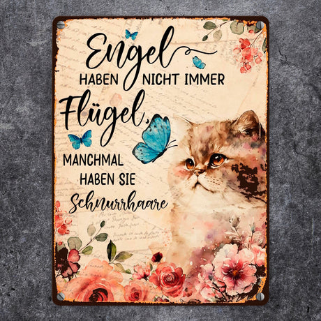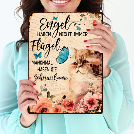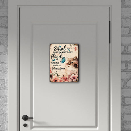 Katzen sind Engel Metallschild in 15x20 cm mit Spruch für Katzenbesitzer