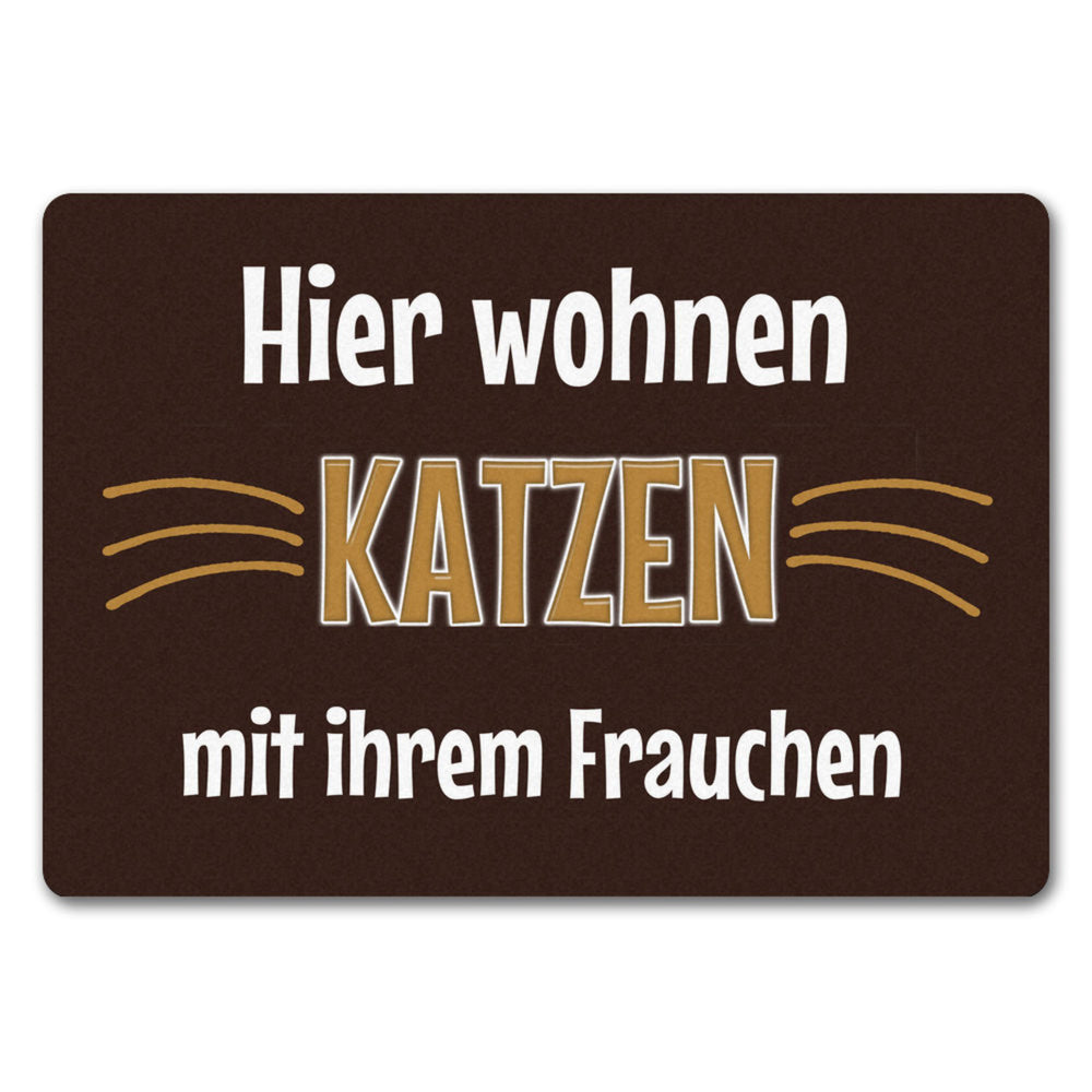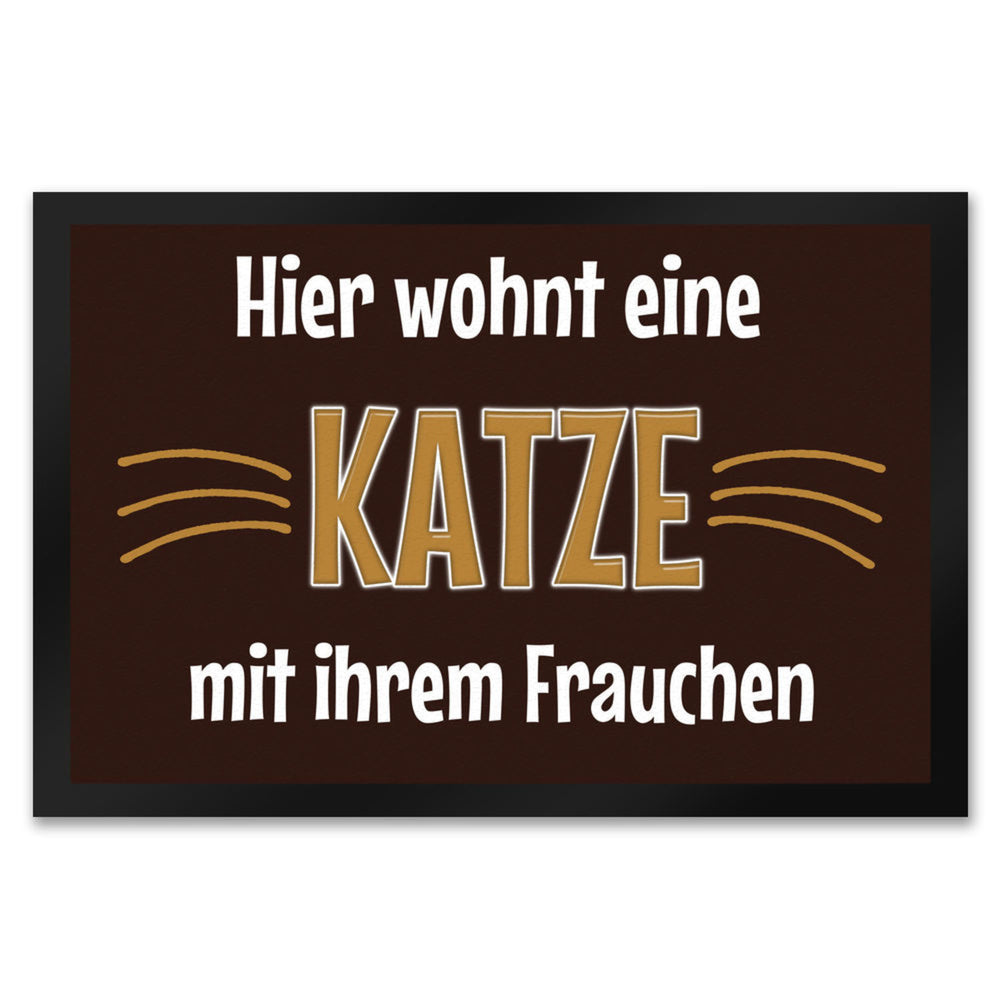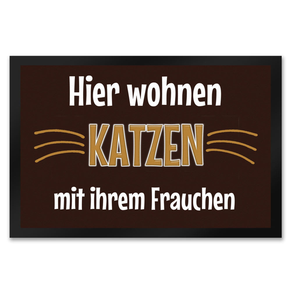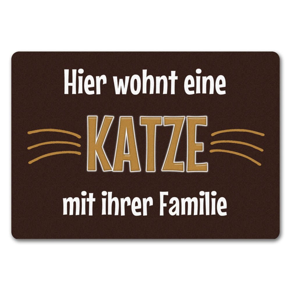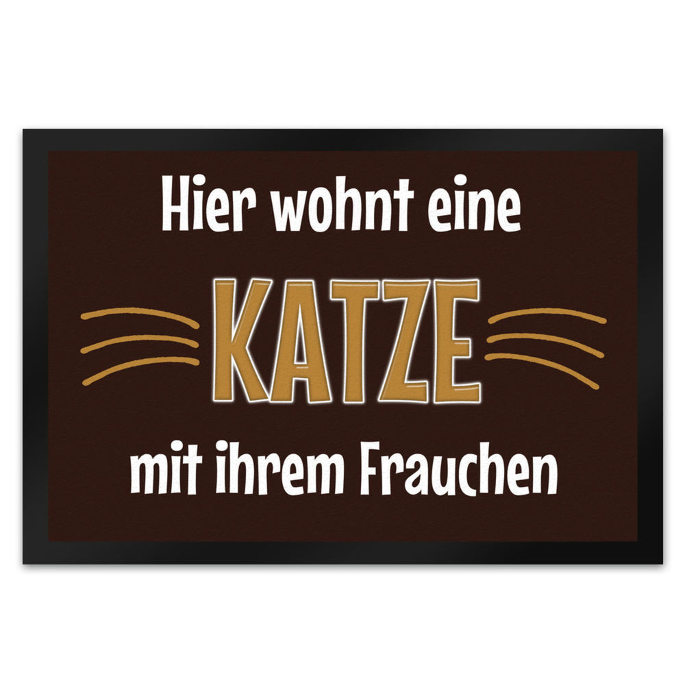 - 1x Fußmatte Hier wohnt eine Katze mit ihrem Personal in der gewählten Größe