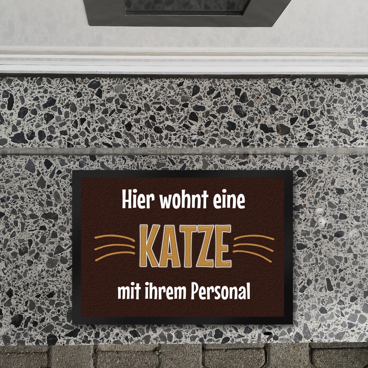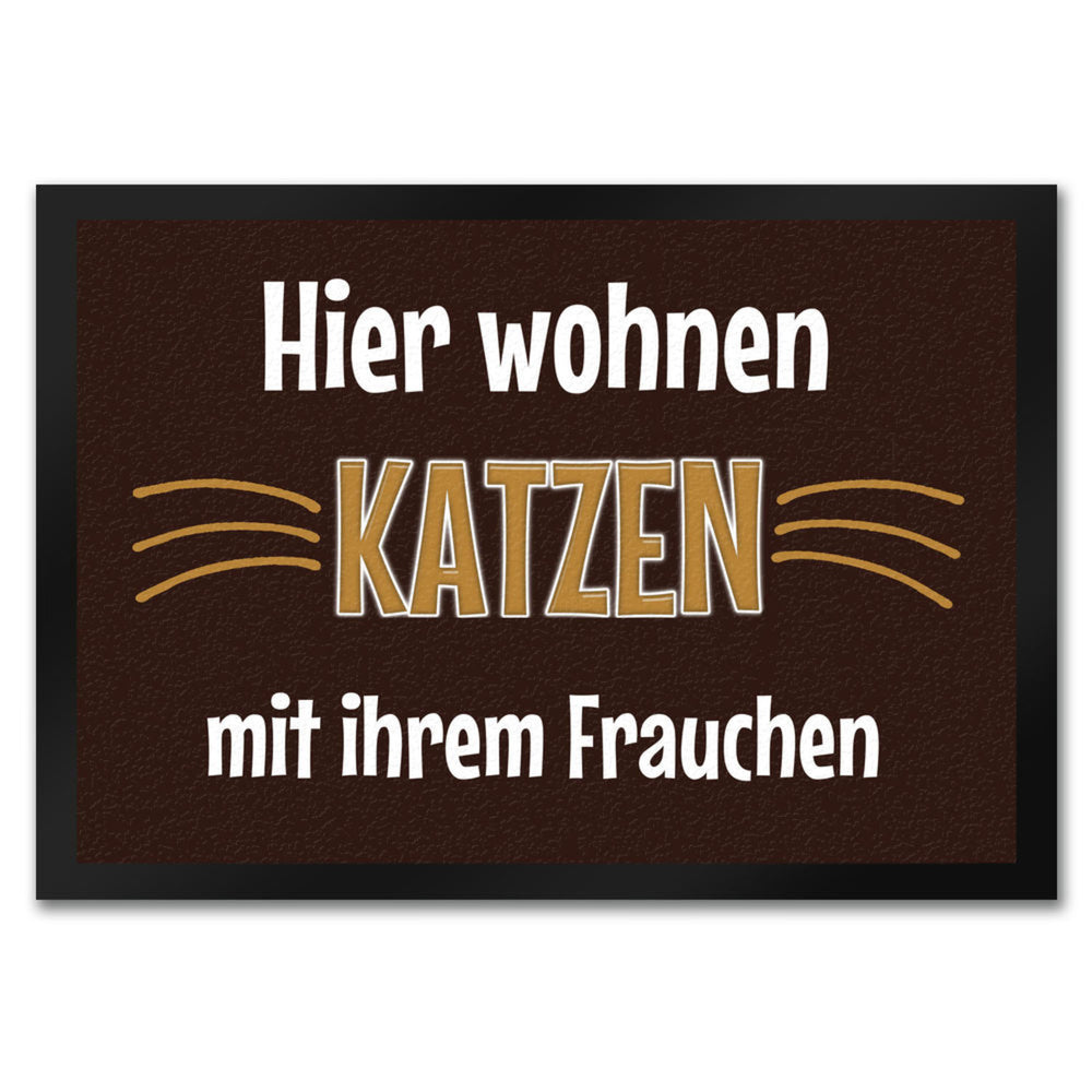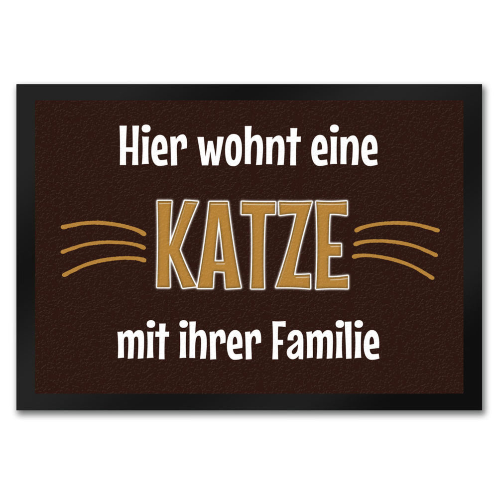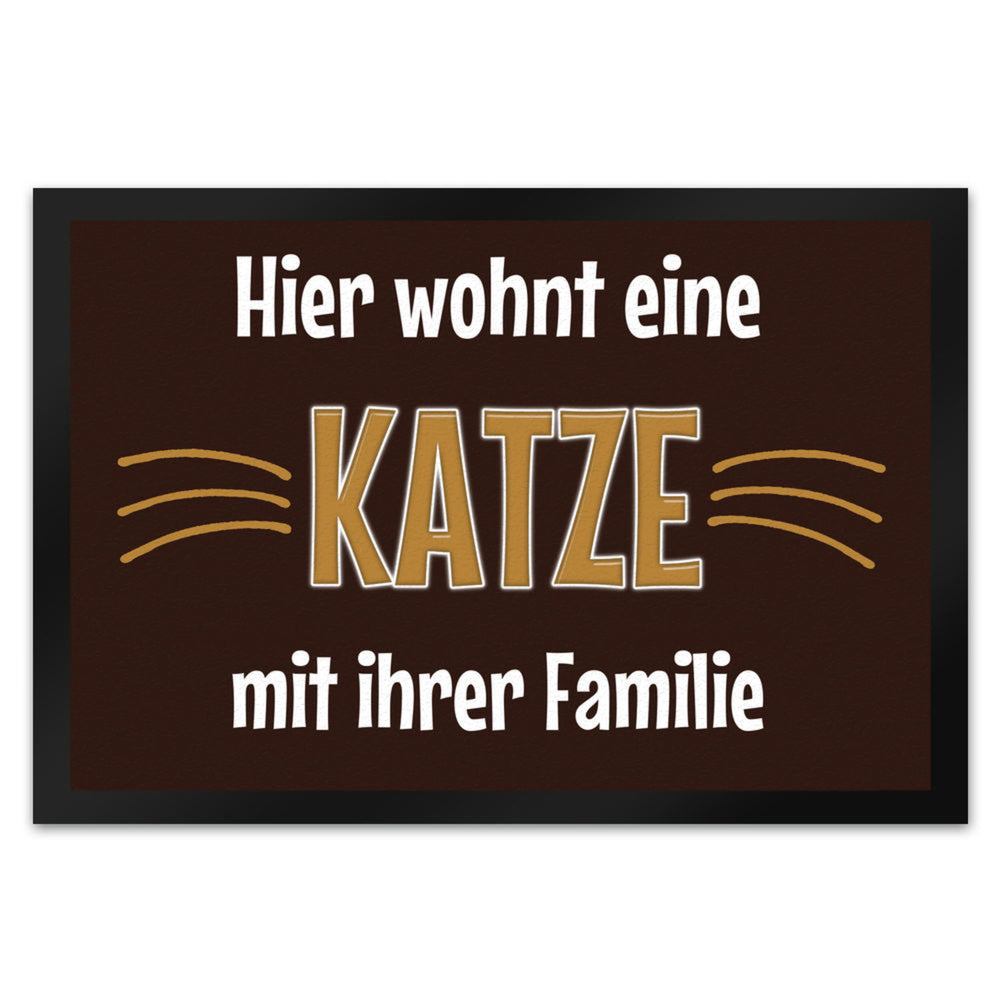 - 1x Fußmatte Hier wohnt eine Katze mit ihrem Personal in der gewählten Größe