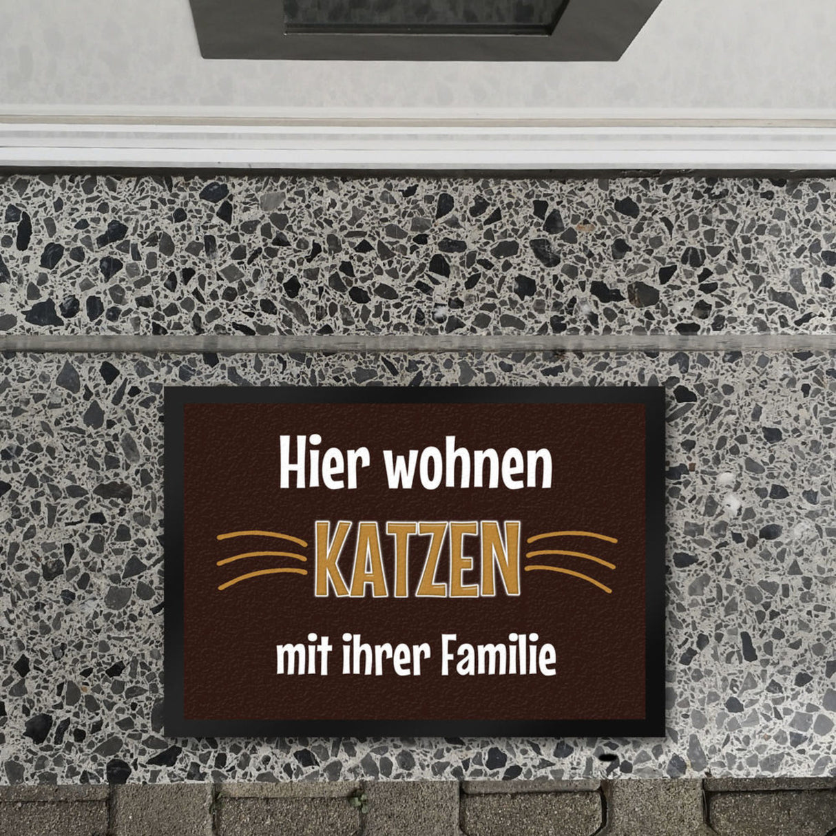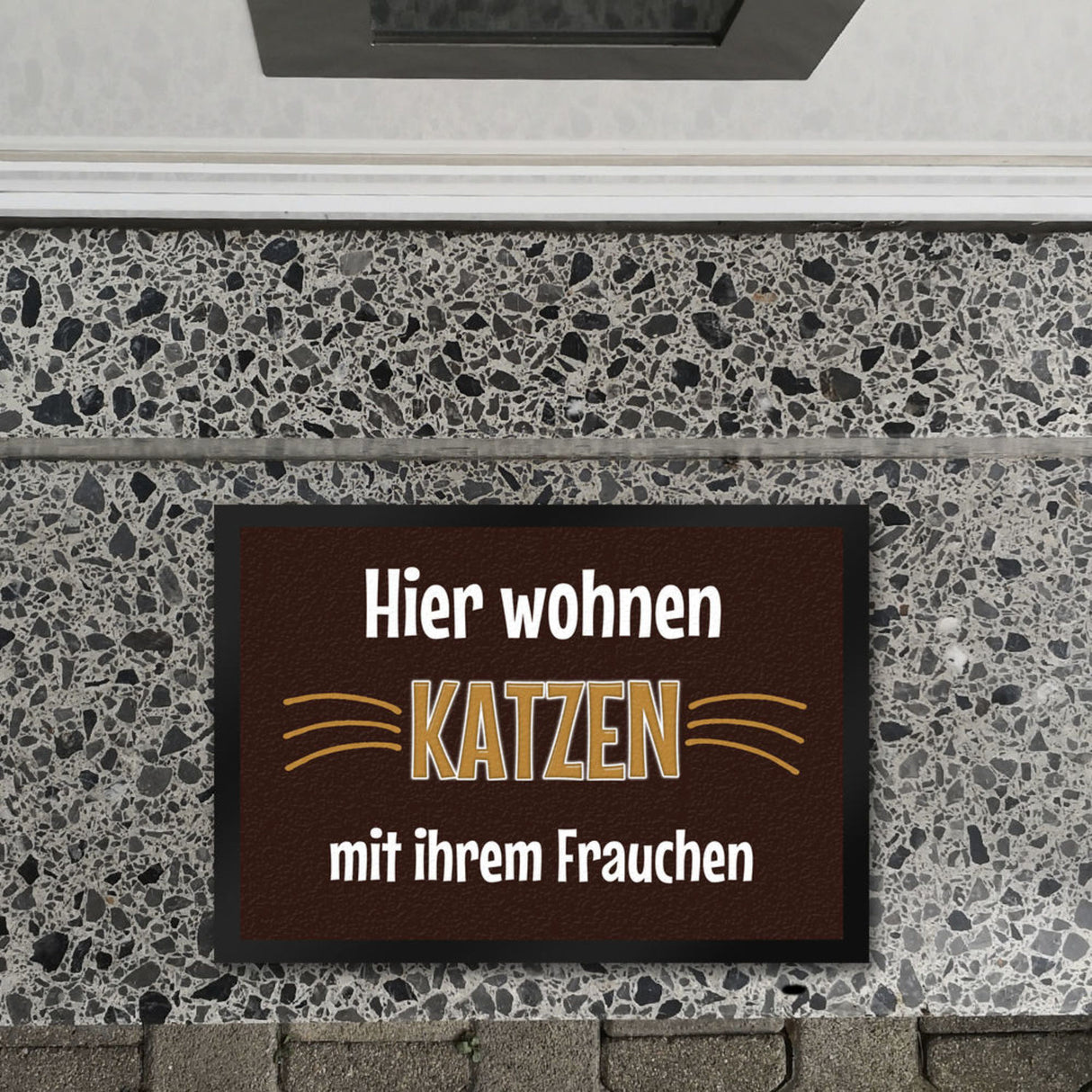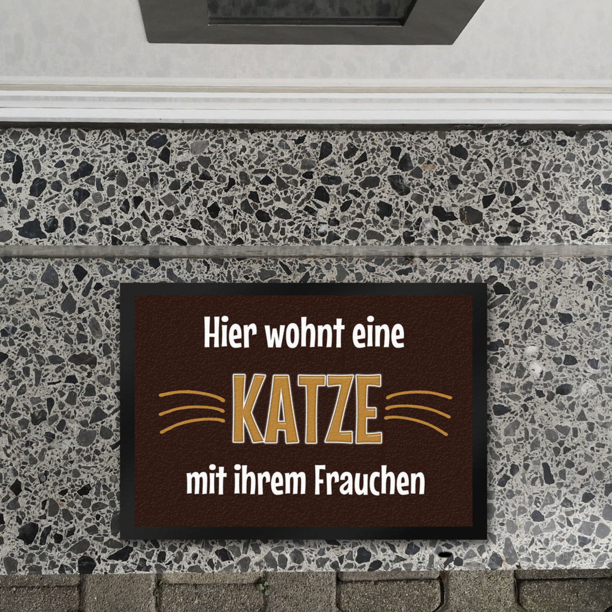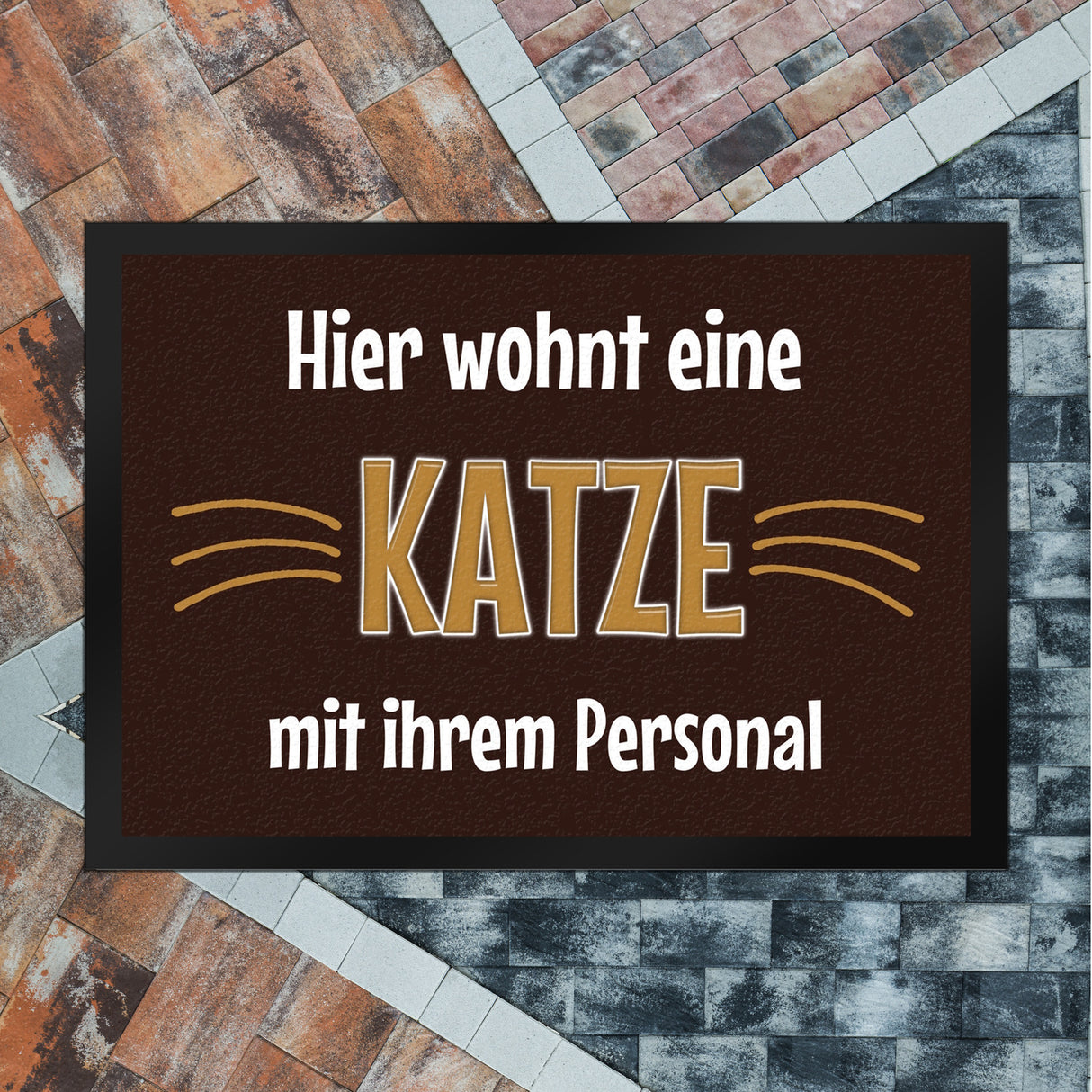 - 1x Fußmatte Hier wohnt eine Katze mit ihrem Personal in der gewählten Größe