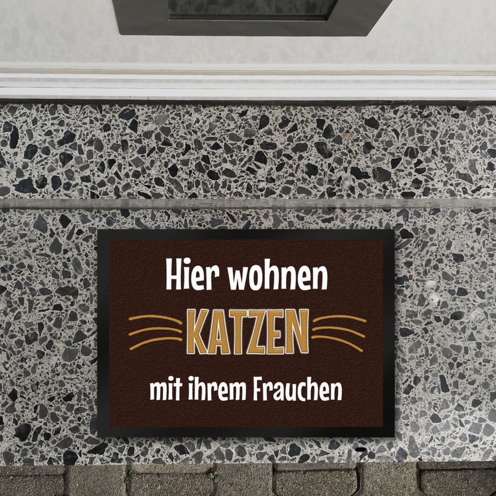 Fußmatte in 35x50 cm - Hier wohnt eine Katze mit ihrem Personal