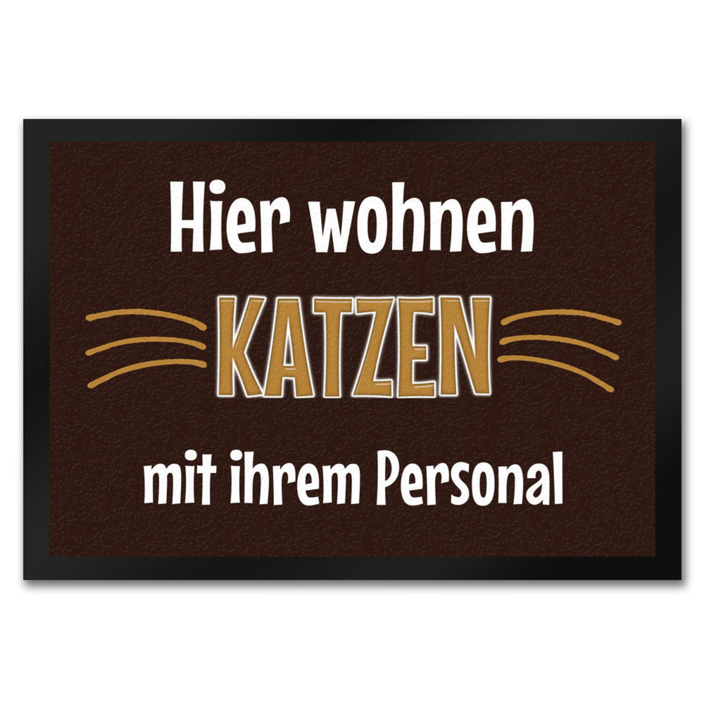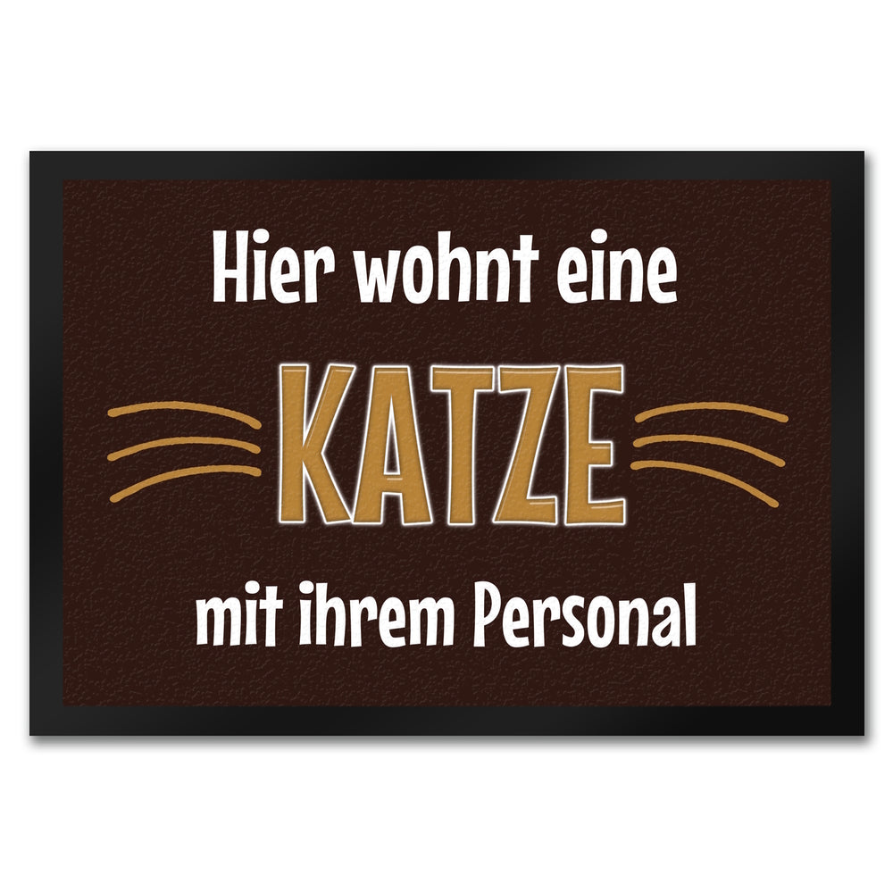 Fußmatte Hier wohnt eine Katze mit ihrem Personal - 50x35 cm / Katze - Personal ist auf Lager und wird versandt, sobald es wieder verfügbar ist