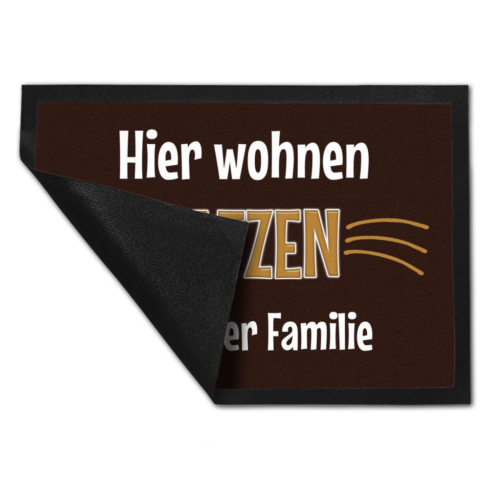 Hier wohnt eine Katze mit ihren Untergebenen Fußmatte mit Pfotenabdrücken