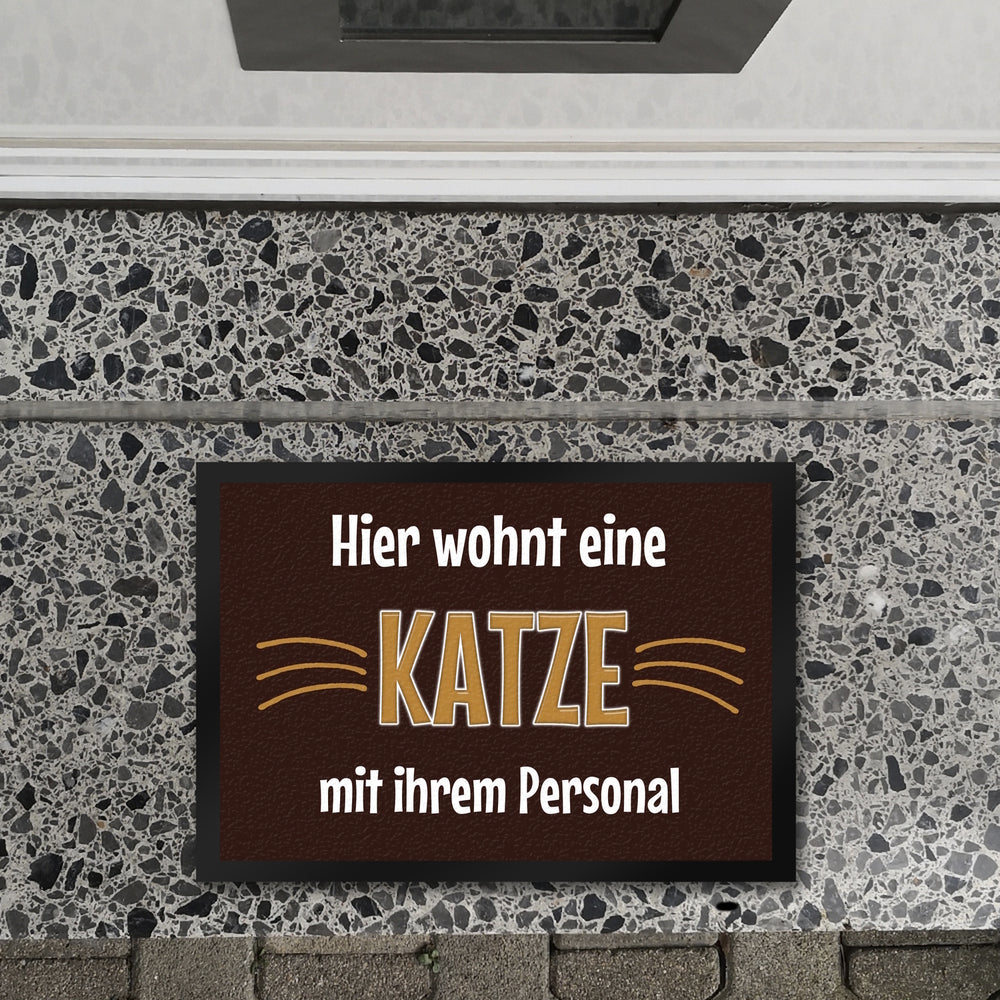 Fußmatte Hier wohnt eine Katze mit ihrem Personal