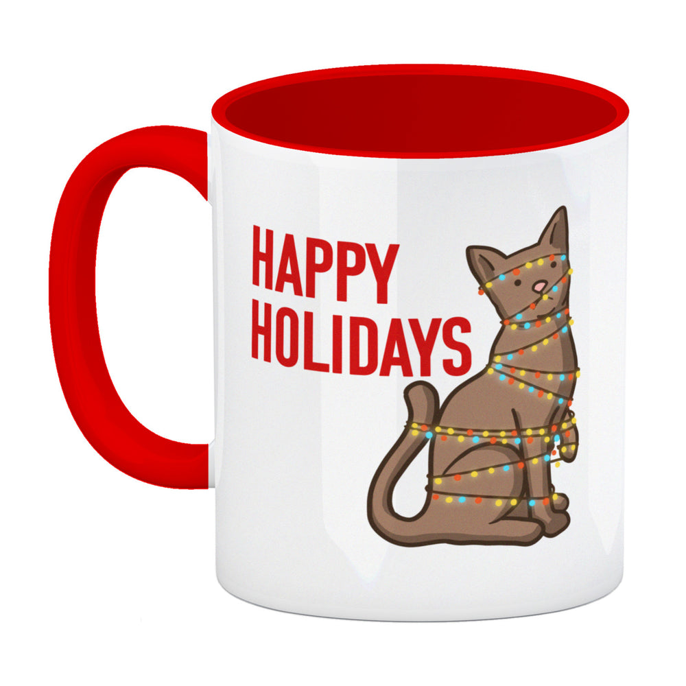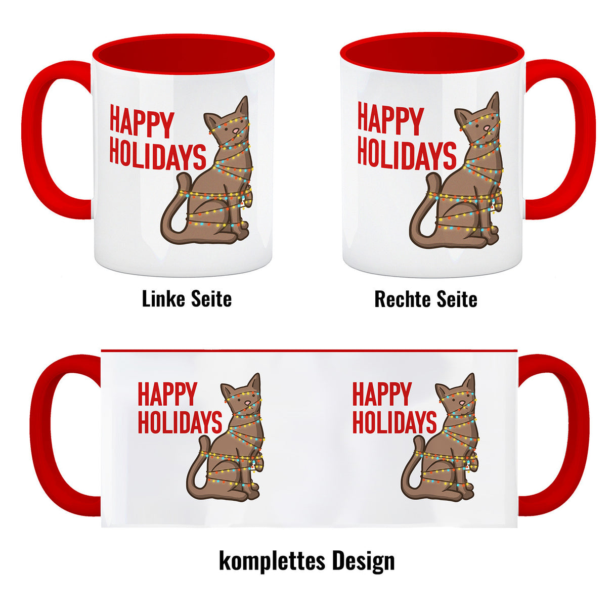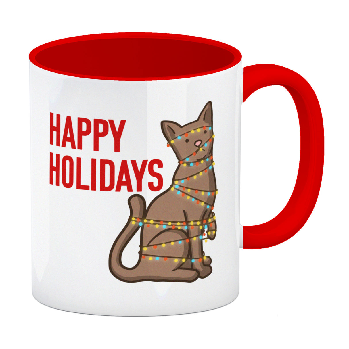 Happy Holidays Weihnachtskatze Kaffeebecher