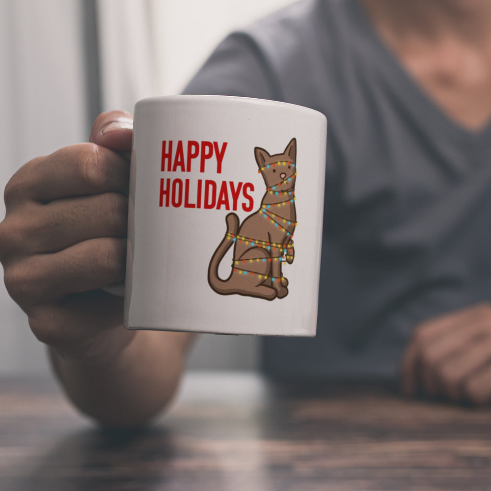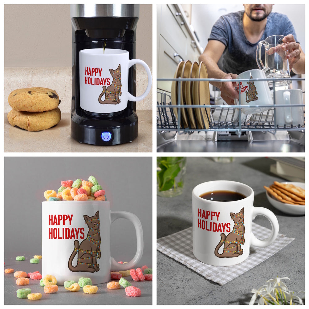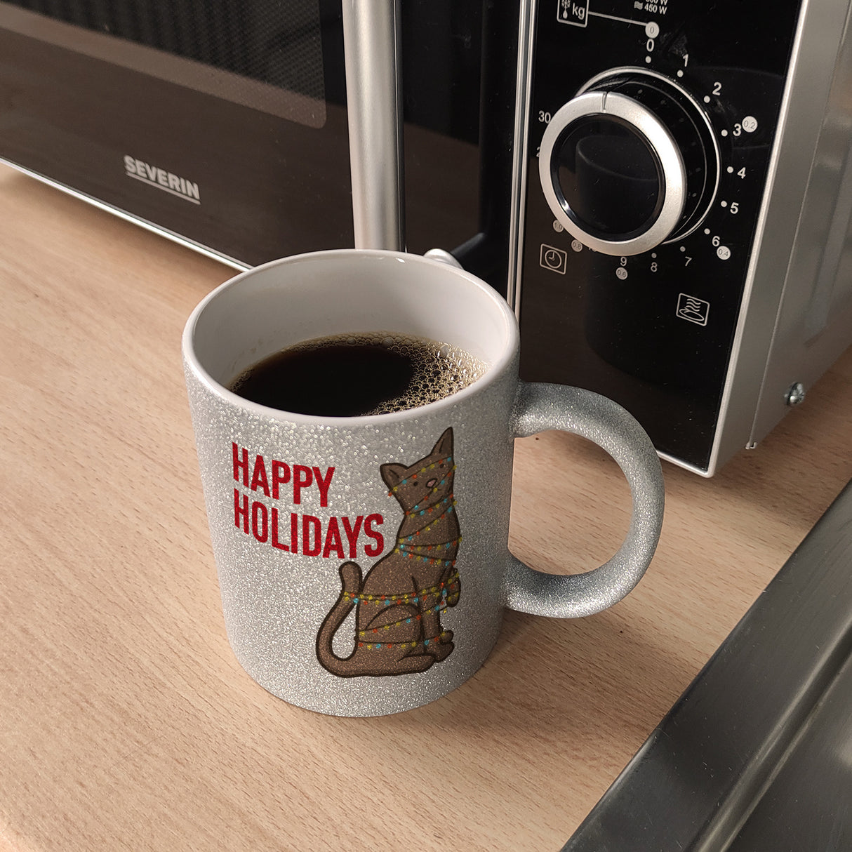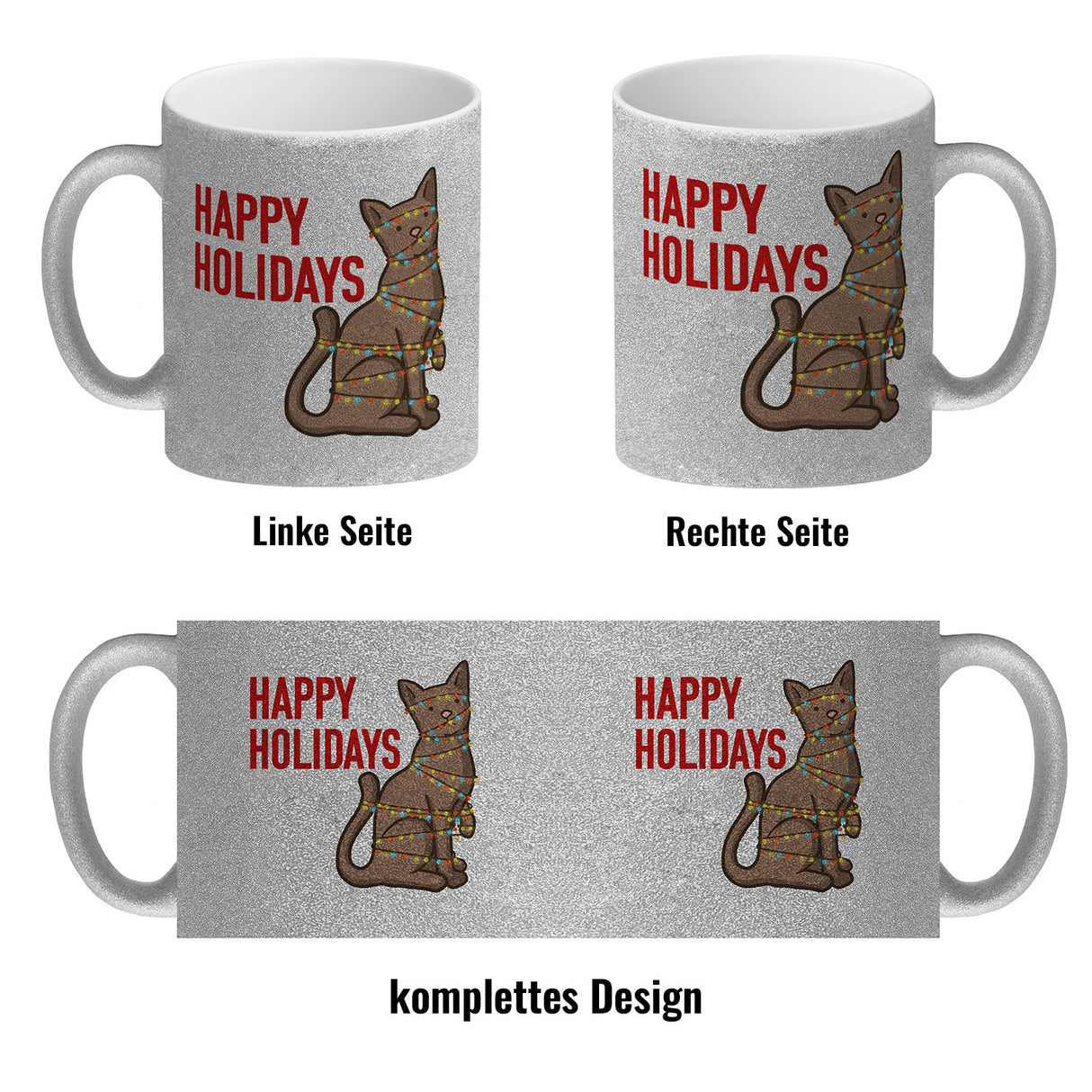 Happy Holidays Weihnachtskatze Kaffeebecher