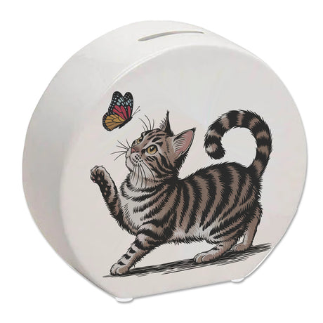 Katze mit Schmetterling Spardose für Tierliebhaber