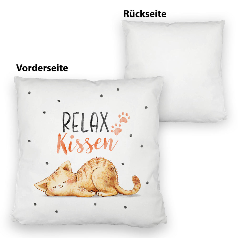 • 1x Relaxte Katze Kissen mit Spruch Relax Kissen in der gewählten Ausführung