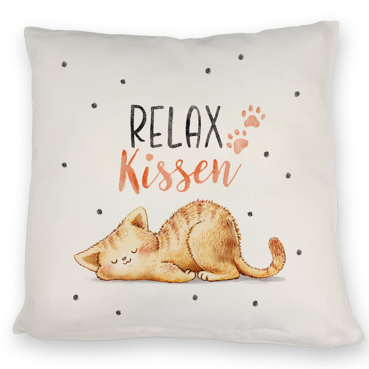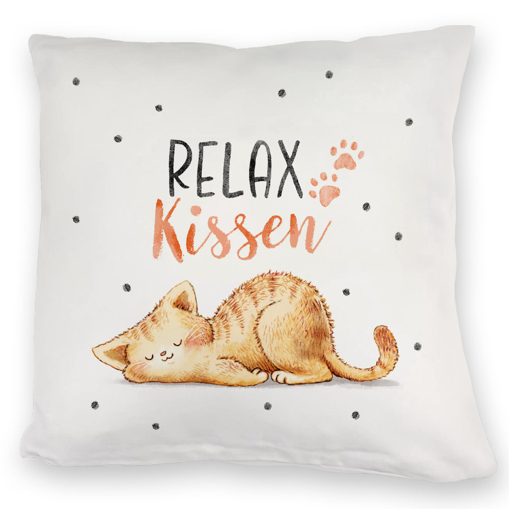 Relaxte Katze Kissen mit Spruch Relax Kissen