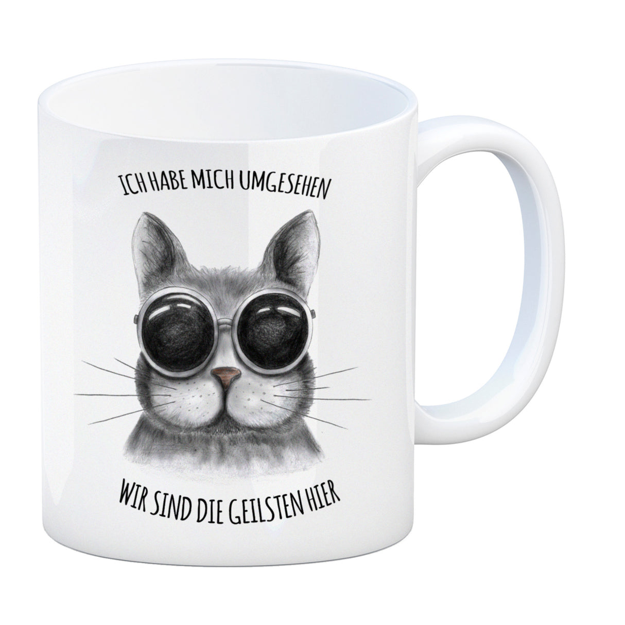 - 1x Wir sind die geilsten hier Katze Kaffeebecher in der gewählten Ausführung