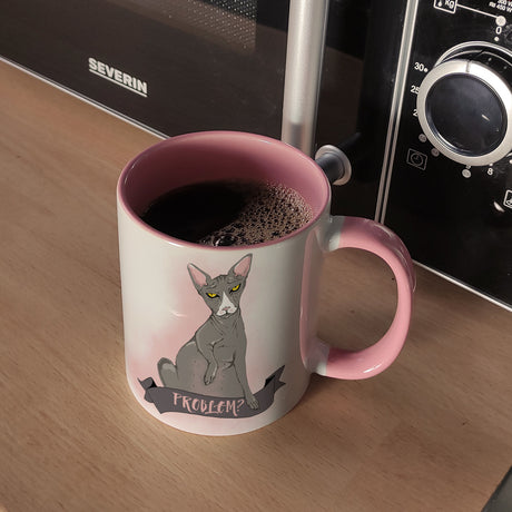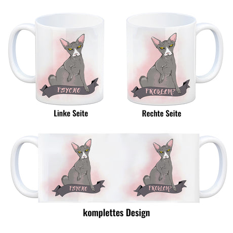Ab €8,95Grundpreis /Nicht verfügbarAuf LagerKaffeebecher mit böse schauender Nacktkatze und Spruch Psycho/Problem?