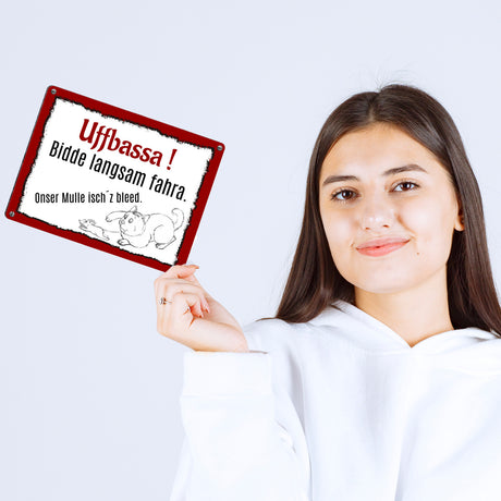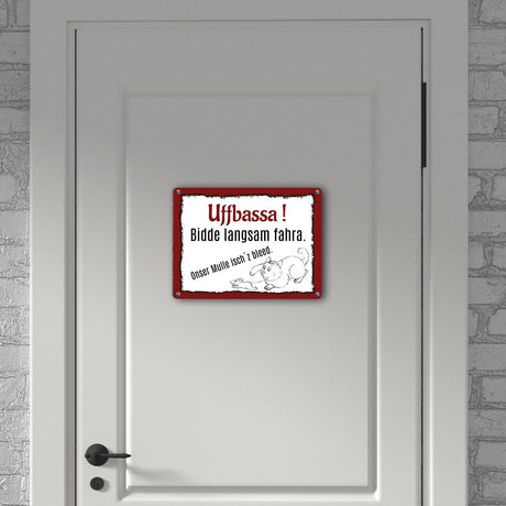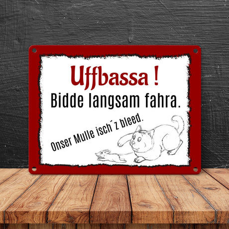 Aufpassen und langsam fahren - unsere Katze ist zu blöd Metallschild in 15x20 cm