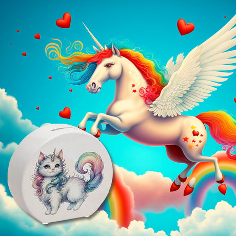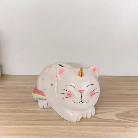 Einhorn-Katze Spardose Einhorn Geschenk für Mädchen Sparschwein aus Keramik