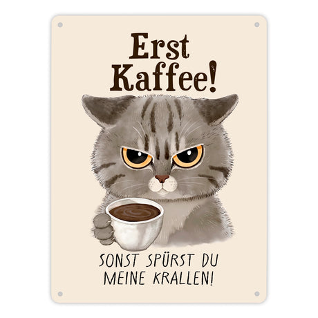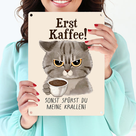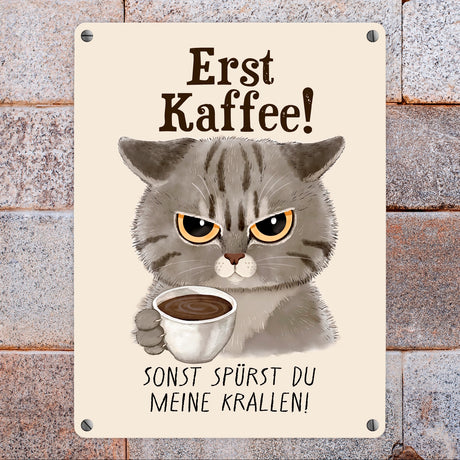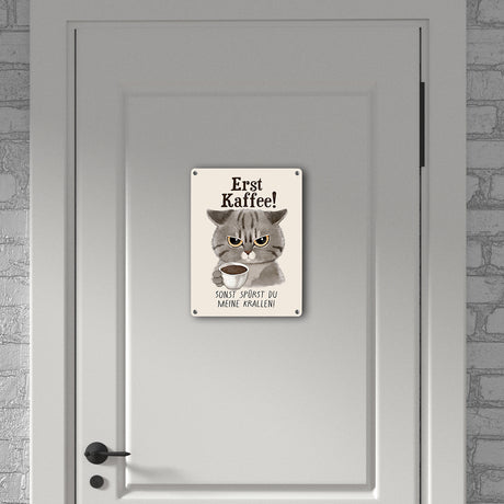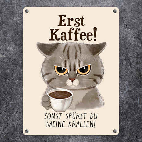 €4,95Grundpreis /Nicht verfügbarAuf LagerMorgenmuffel Katze Metallschild in 15x20 cm mit Spruch Erst Kaffee sonst Krallen