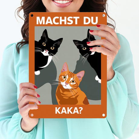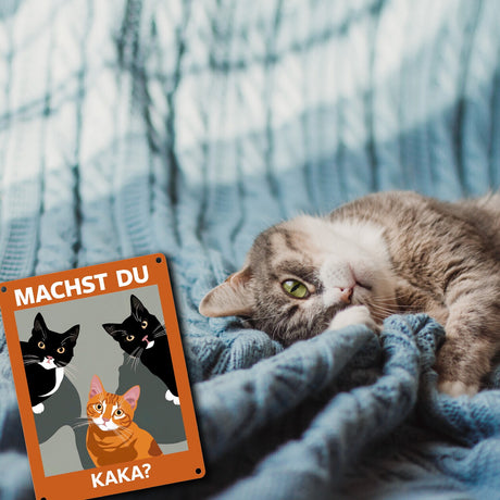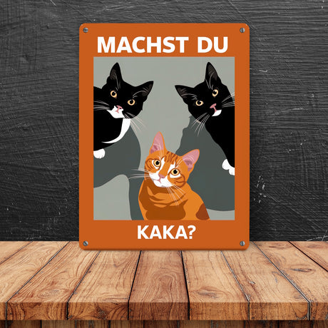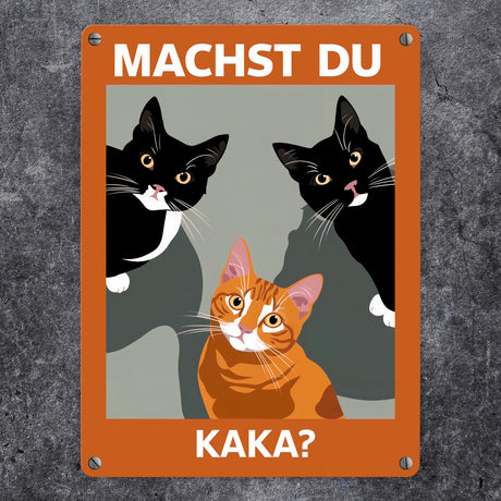 Ab €4,95Grundpreis /Nicht verfügbarAuf LagerDrei neugierige Katzen Metallschild in 15x20 cm - Machst du Kaka?
