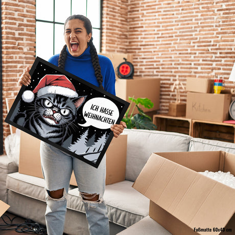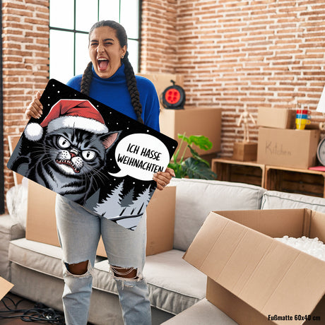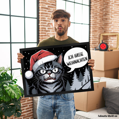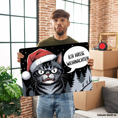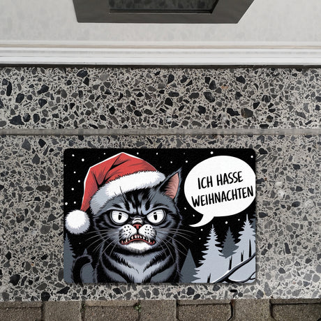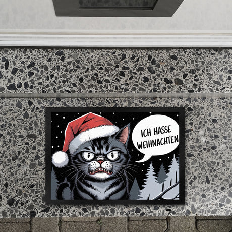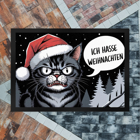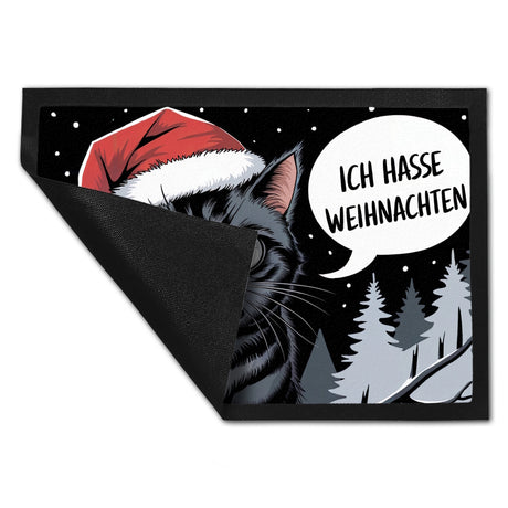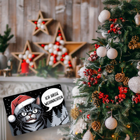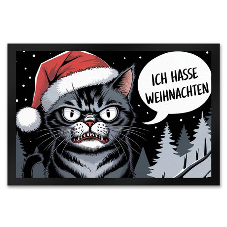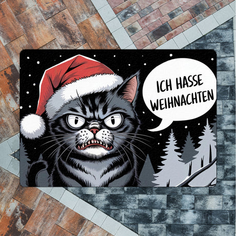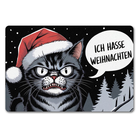 Ab €4,95Grundpreis /Nicht verfügbarAuf LagerGrimmige Katze mit Weihnachtsmütze - Ich hasse Weihnachten Fußmatte in 35x50 cm ohne Rand