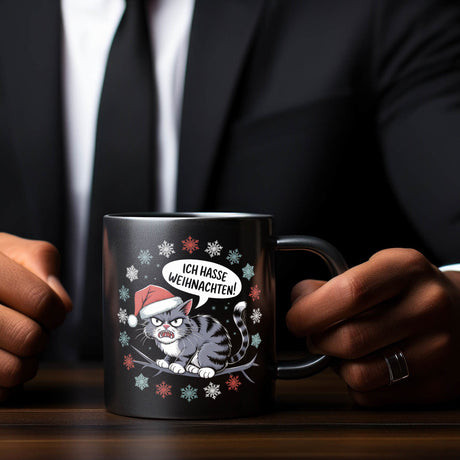 Ab €19,95Grundpreis /Nicht verfügbarAuf LagerGrimmige Katze mit Weihnachtsmütze - Ich hasse Weihnachten Tasse