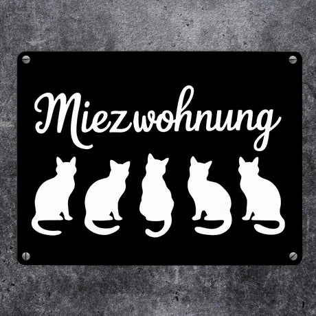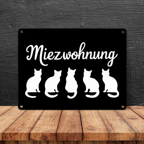 Ab €7,90Grundpreis /Nicht verfügbarAuf LagerMiezwohnung Katzen Silhouetten Metallschild in 15x20 cm für Katzenfans