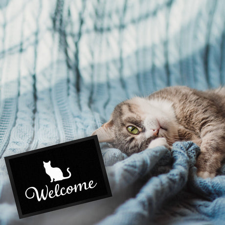 €16,95Grundpreis /Nicht verfügbarAuf LagerLuxusleben Katze Fußmatte ohne Rand in blau mit Barthaar Motiv