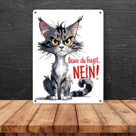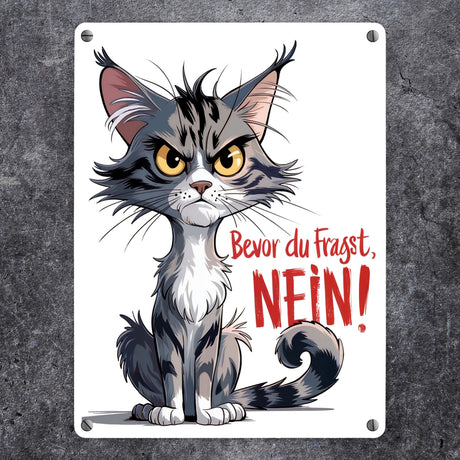 Ab €14,95Grundpreis /Nicht verfügbarAuf LagerGrimmige Katze Metallschild in 15x20 cm mit Spruch Bevor du fragst: NEIN!