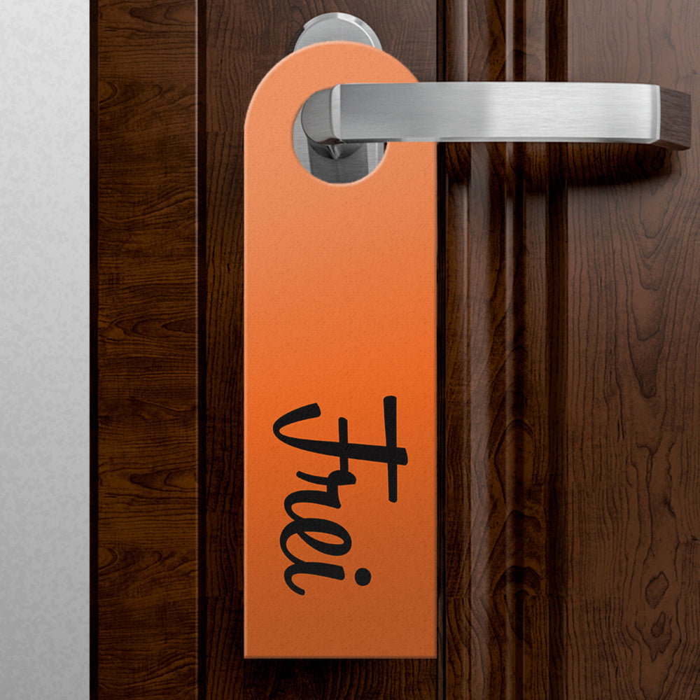 - 1x Besetzt oder Frei Türhänger in Orange in der gewählten Setgröße