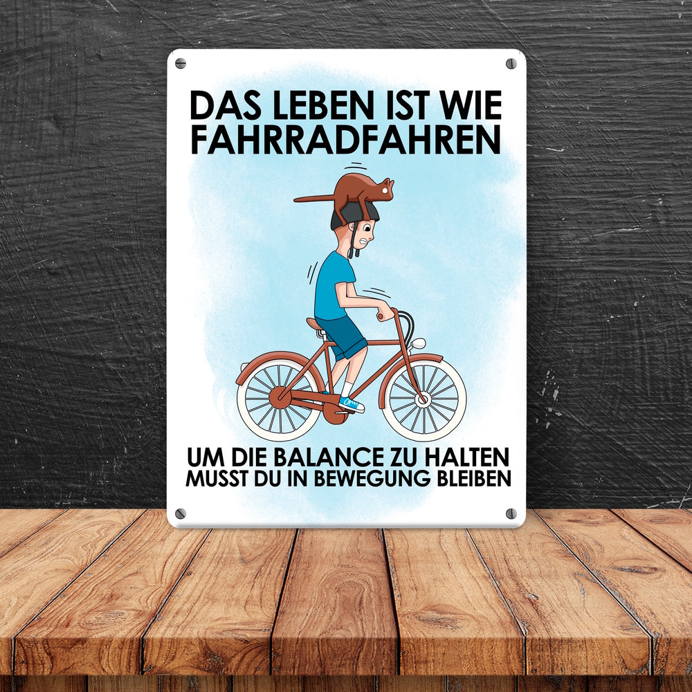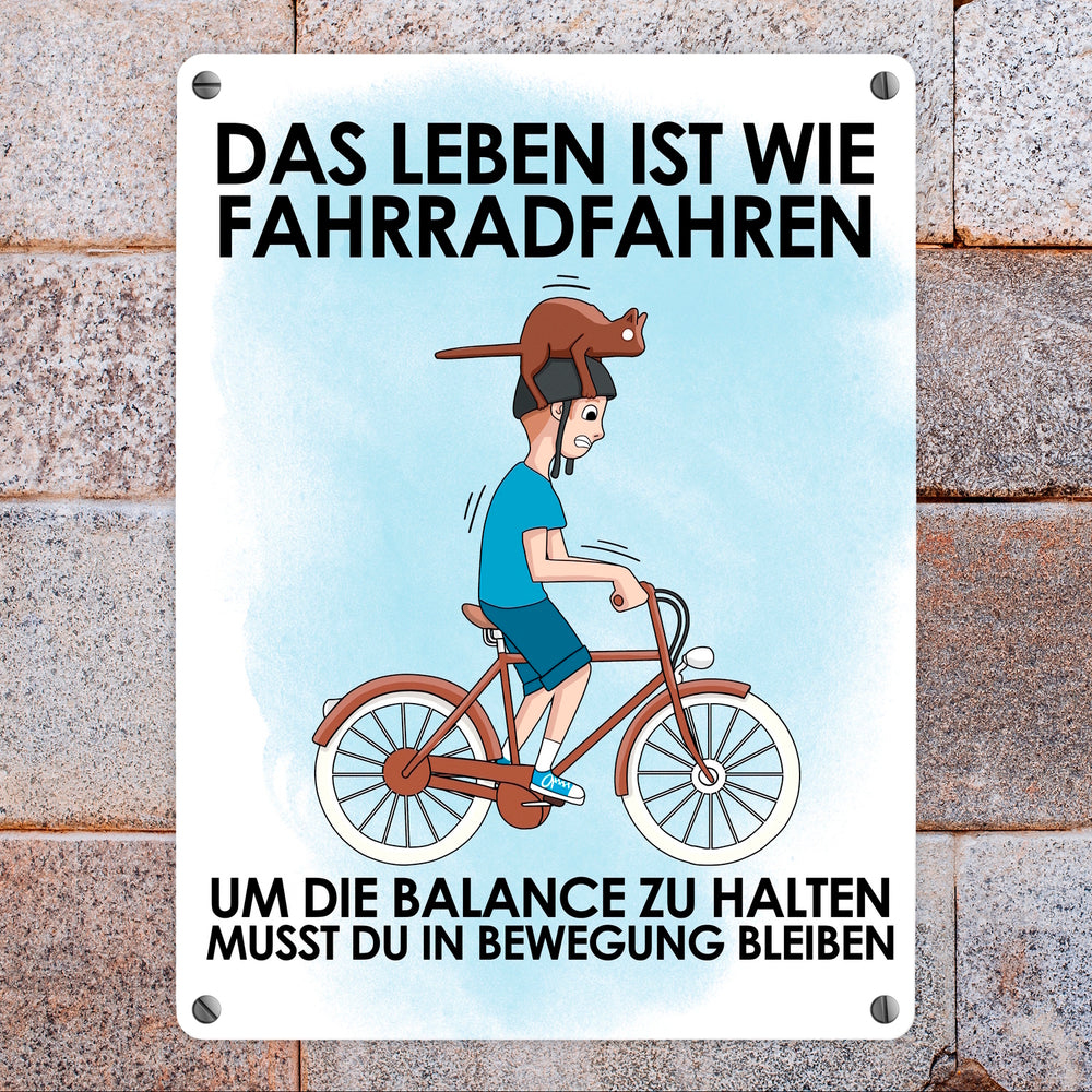 Das Leben ist wie Fahrrad fahren Metallschild - Weisheit Leben Mensch Ratschlag Radfahren
