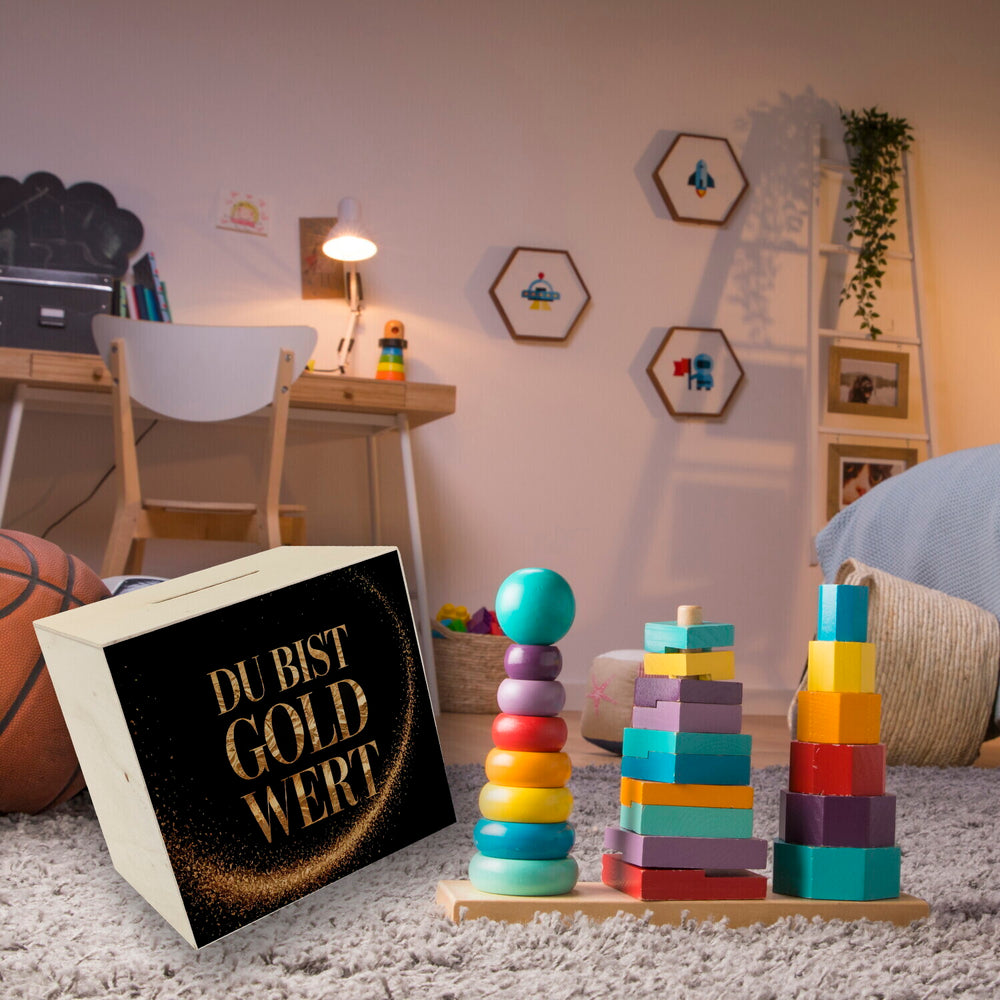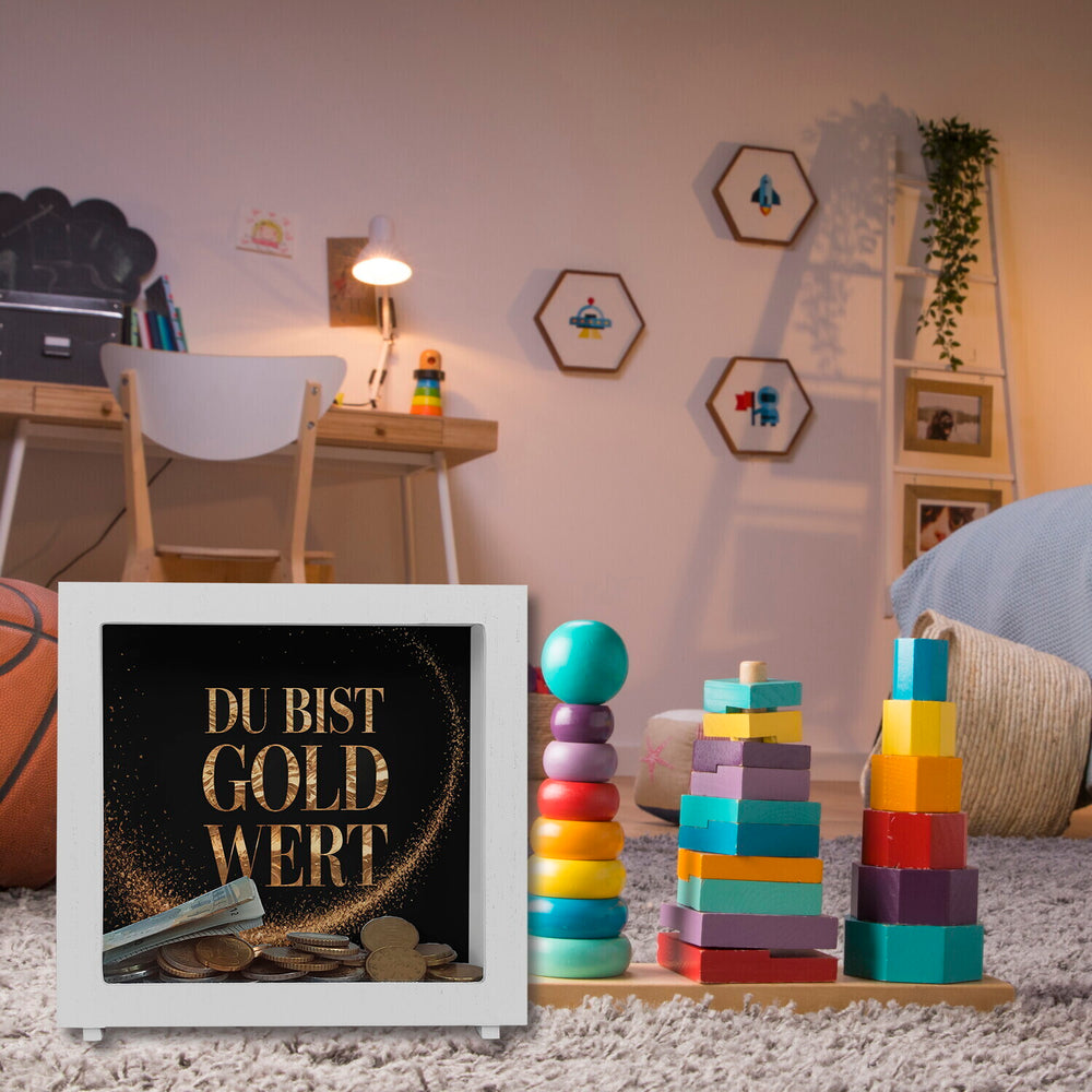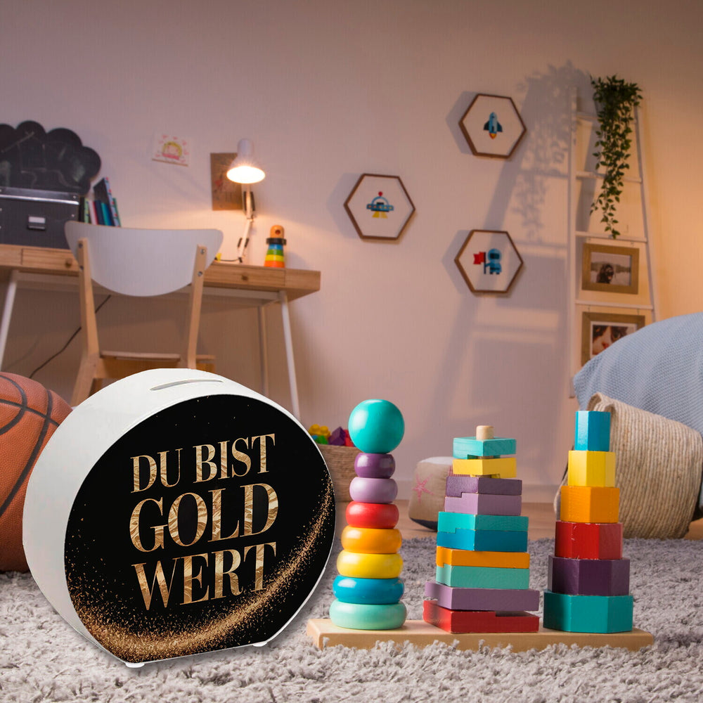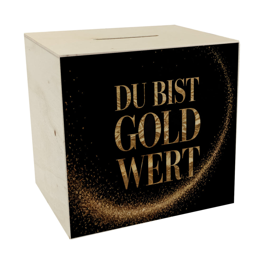 - 1x Du bist Gold wert Spardose Goldener Text in der gewählten Ausführung