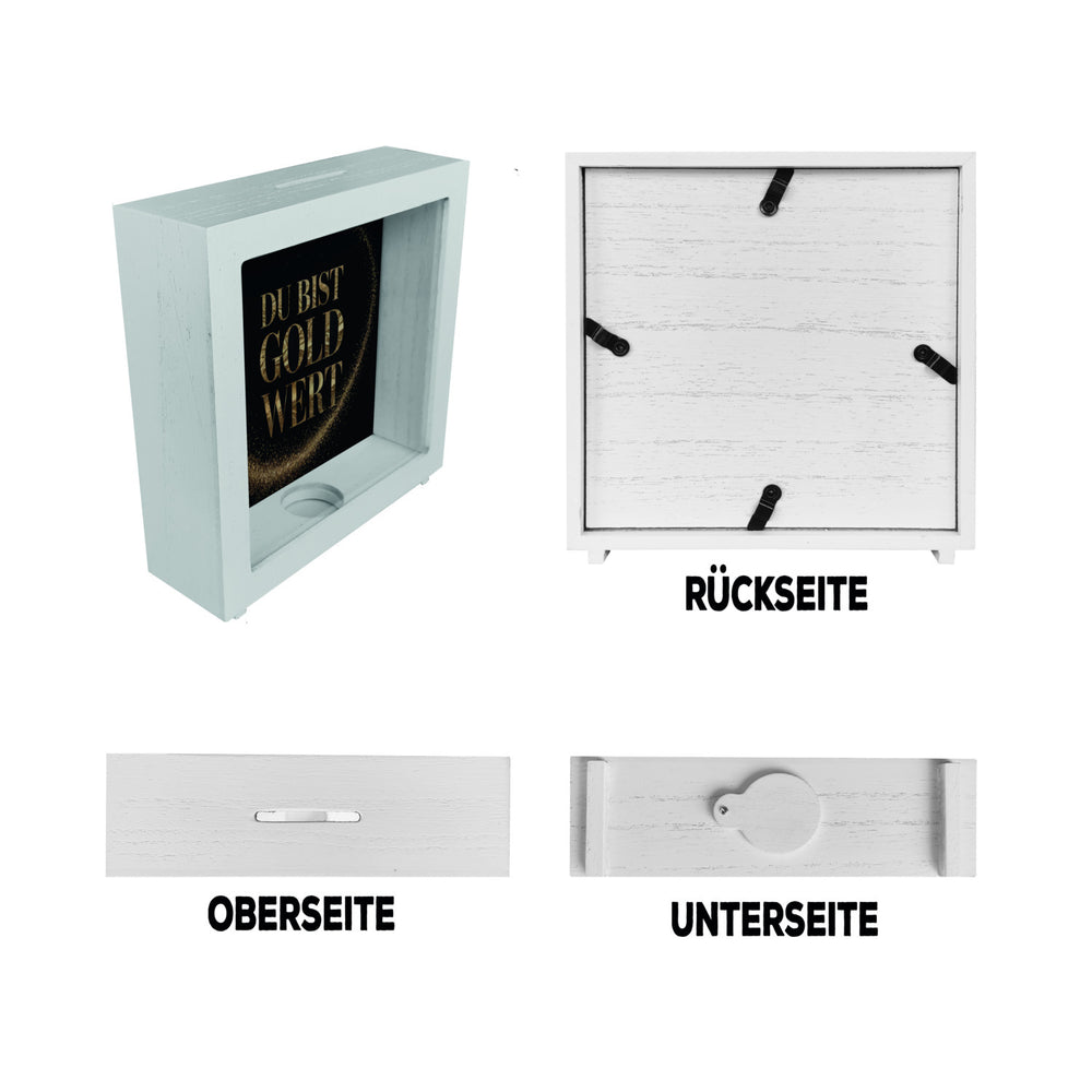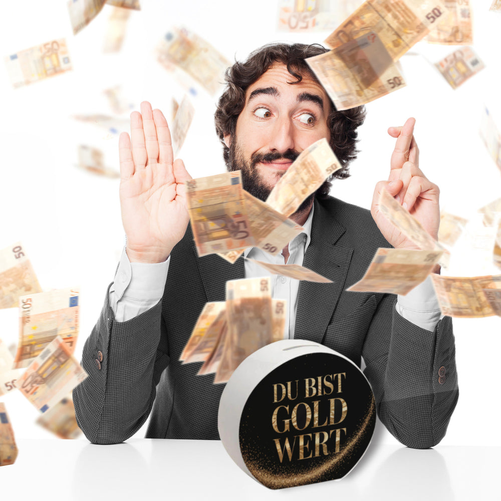 - Hol dir jetzt diese stilvolle Spardose, liebevoll designt und bedruckt. Sie vereint Qualität und Eleganz in einem sinnvollen Accessoire. Lass jemanden wissen, dass er Gold wert ist, und bringe ein wenig Glanz in seinen Alltag! Ein einzigartiges Geschenk, das sowohl praktisch als auch ästhetisch ist.
