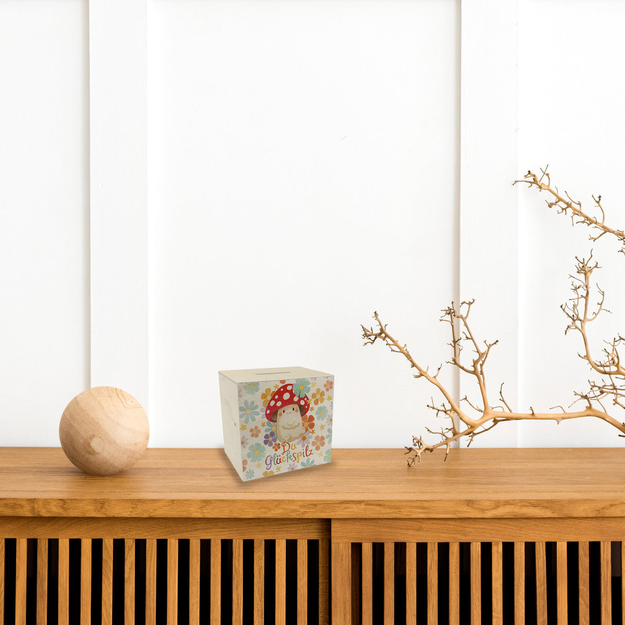 • 1x Du Glückspilz Spardose mit Blumen Hintergrund in der gewählten Ausführung