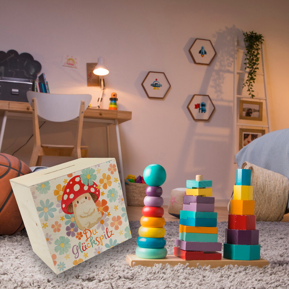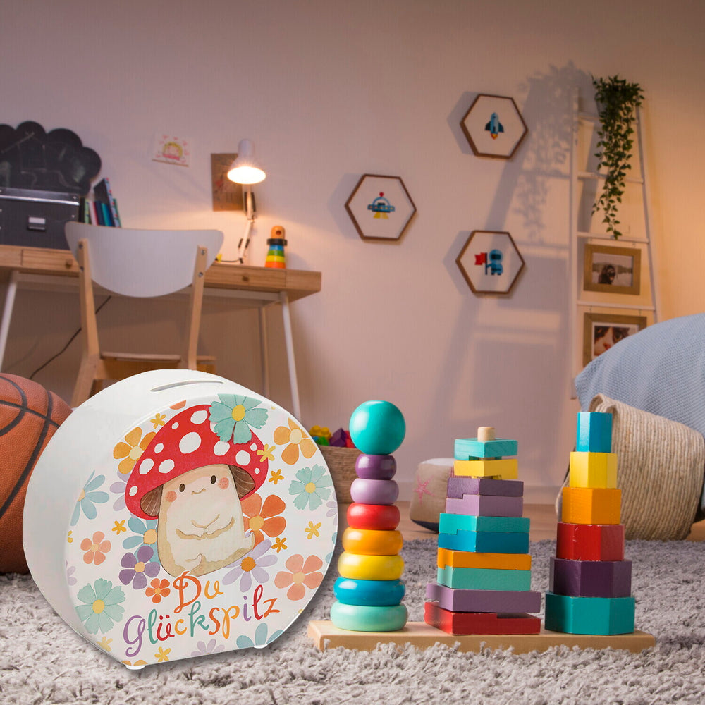 • Suchst du nach einem sinnvollen und gleichzeitig niedlichen Geschenk? Dann ist die Spardose "Du Glückspilz" genau das Richtige! Sie ist das perfekte Geschenk zum Kindergeburtstag oder als Glücksbringer für das neue Kinderzimmer. Und mit ein bisschen Startkapital gefüllt, ist sie das ideale Geschenk, um das Sparen spielerisch zu lernen.