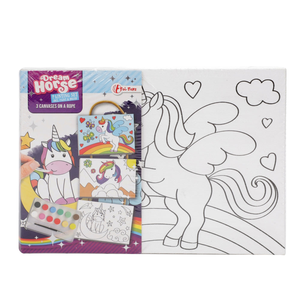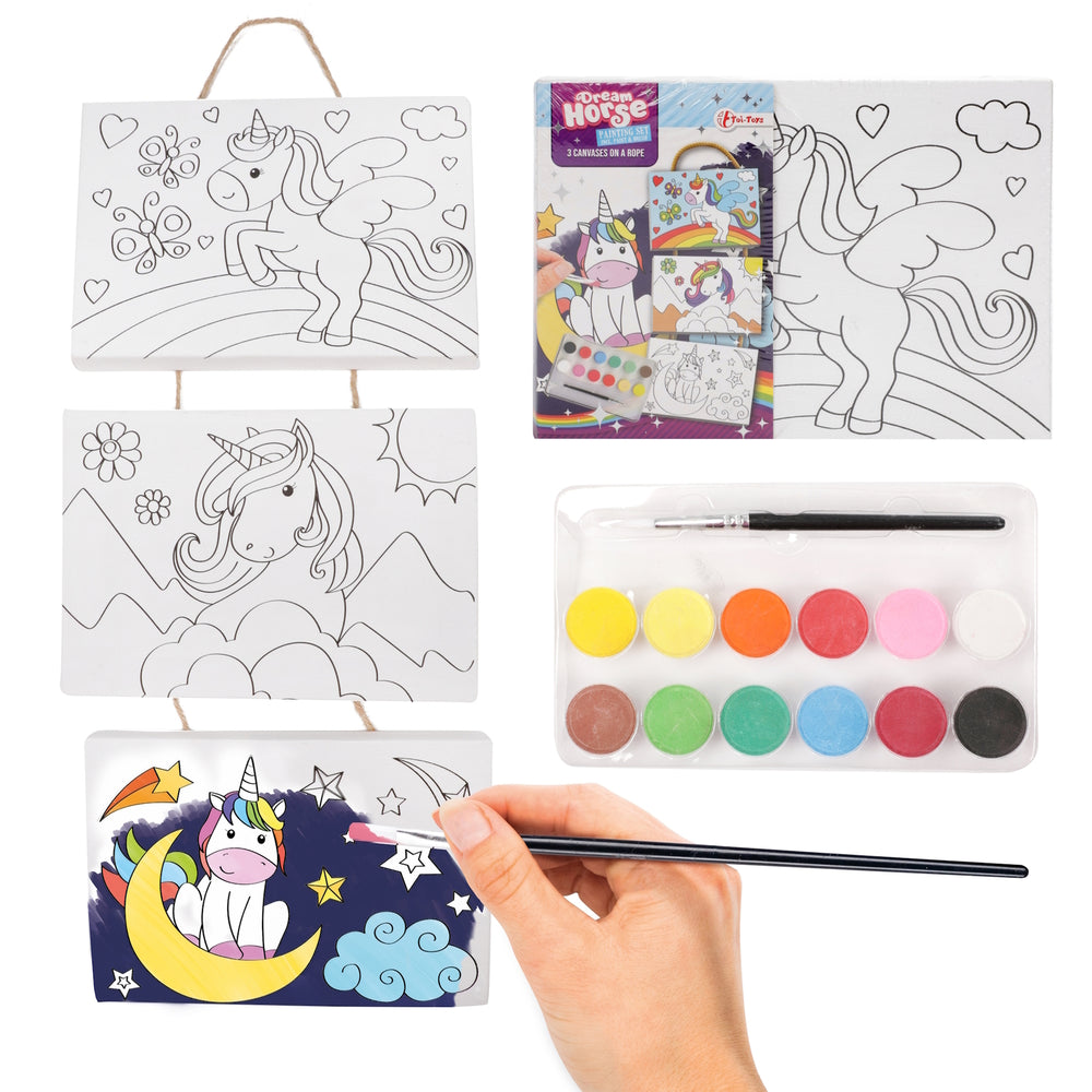 Einhorn Malset für Kinder mit 3 Leinwänden, 12 Farben und Pinsel