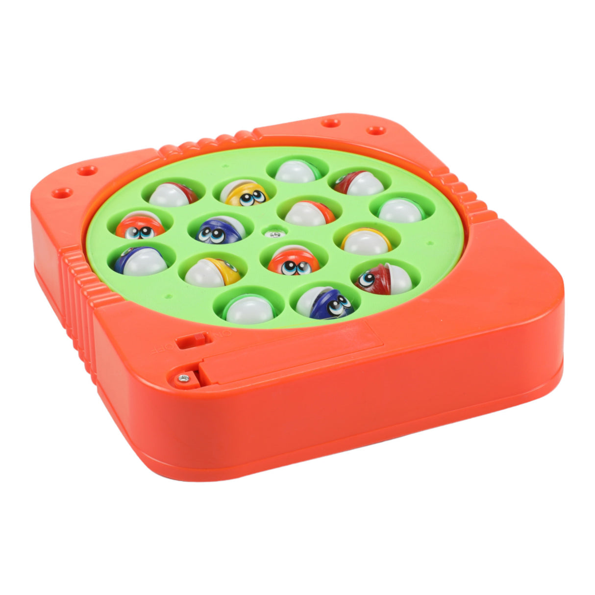 - Mit einem klickenden Startschalter erwacht der kunterbunte Teich zum Leben und die Fische beginnen ihre wilde Reise. Ausgestattet mit drei robusten Angelruten, geht’s ans Eingemachte. Die flinken Fischchen stellen die Spieler vor eine geduldige Probe – ein Zappeln, ein Spannen, ein Lachen!