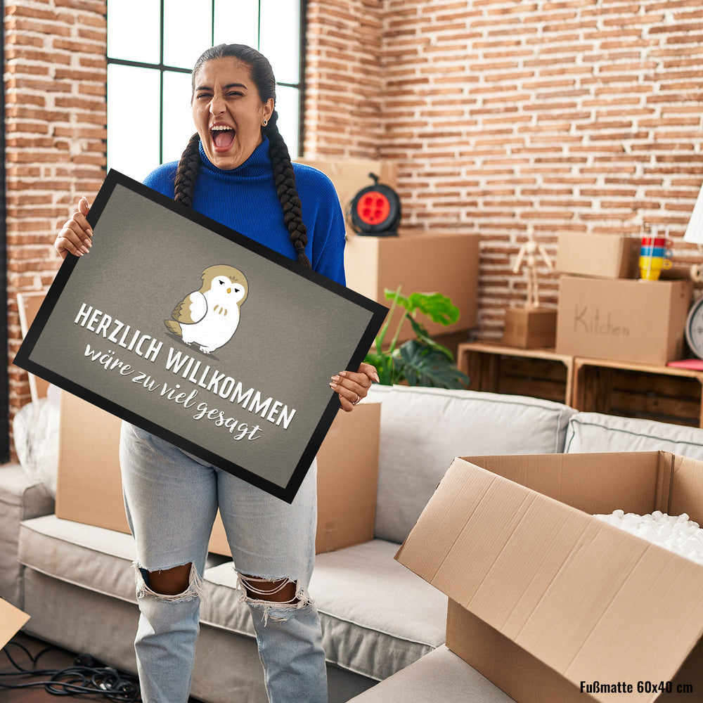 Eule Fußmatte in 35x50 cm mit Spruch Herzlich willkommen wäre zu viel gesagt
