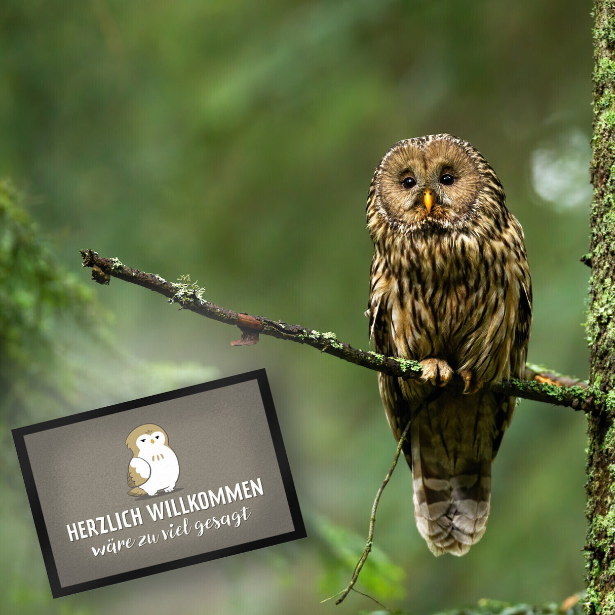 Eule Fußmatte in 35x50 cm ohne Rand mit Spruch Herzlich willkommen wäre zu viel gesagt