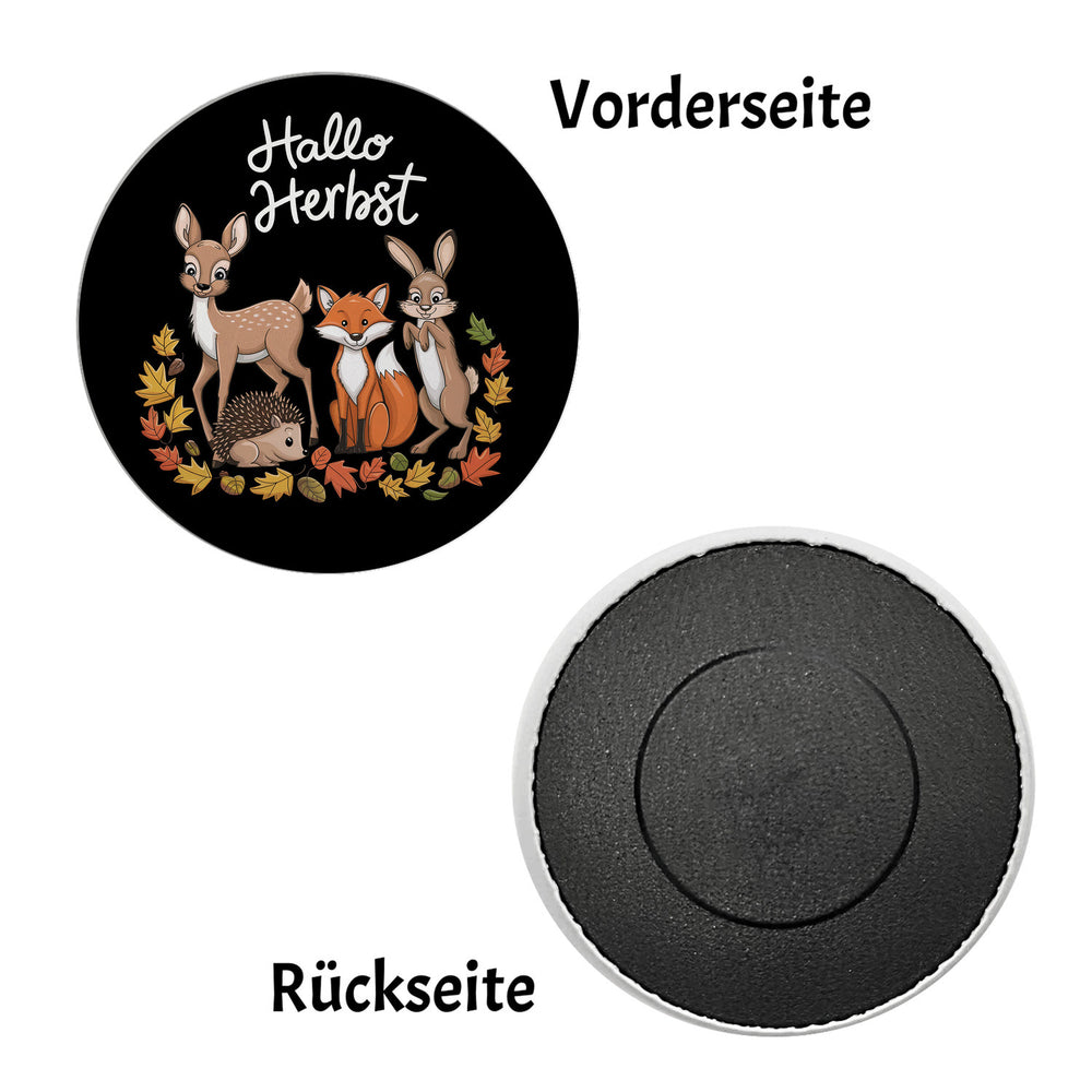 - 1x Hallo Herbst Magnet rund - Herbstliche Waldszene mit Tieren in der gewählten Ausführung