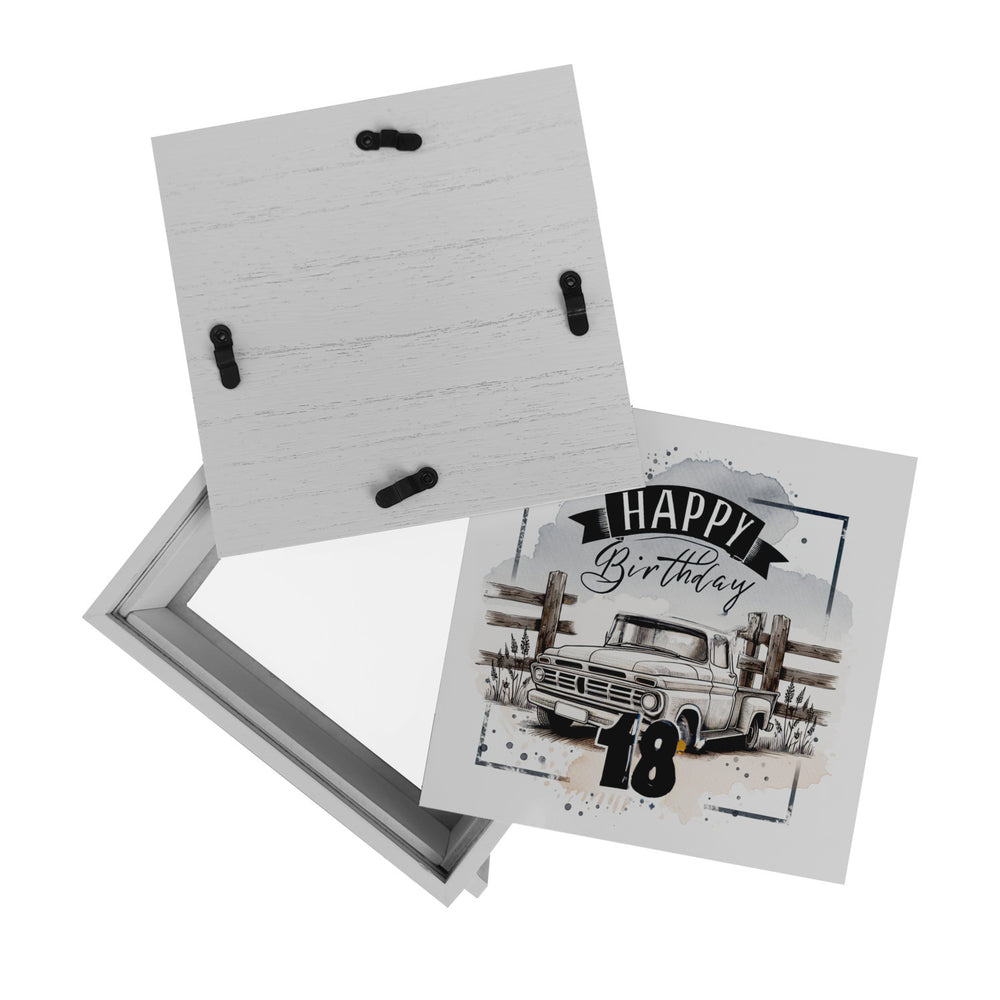 - Feiern Sie wie ein Rockstar mit unserer "Happy Birthday 18 Auto Spardose"! Das Design vereint rustikale Eleganz mit einem coolen Vintage-Auto, perfekt für Ihre Geburtstagsfeier.