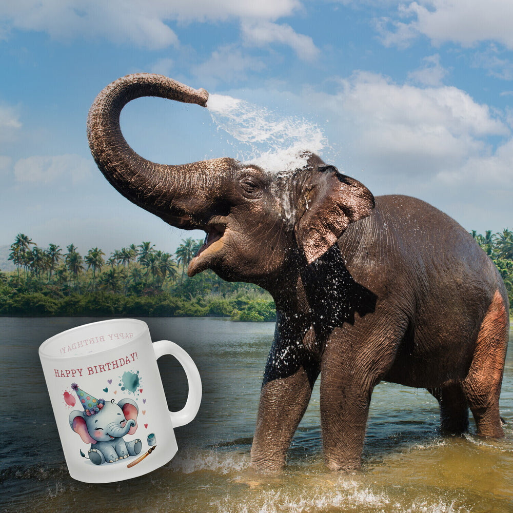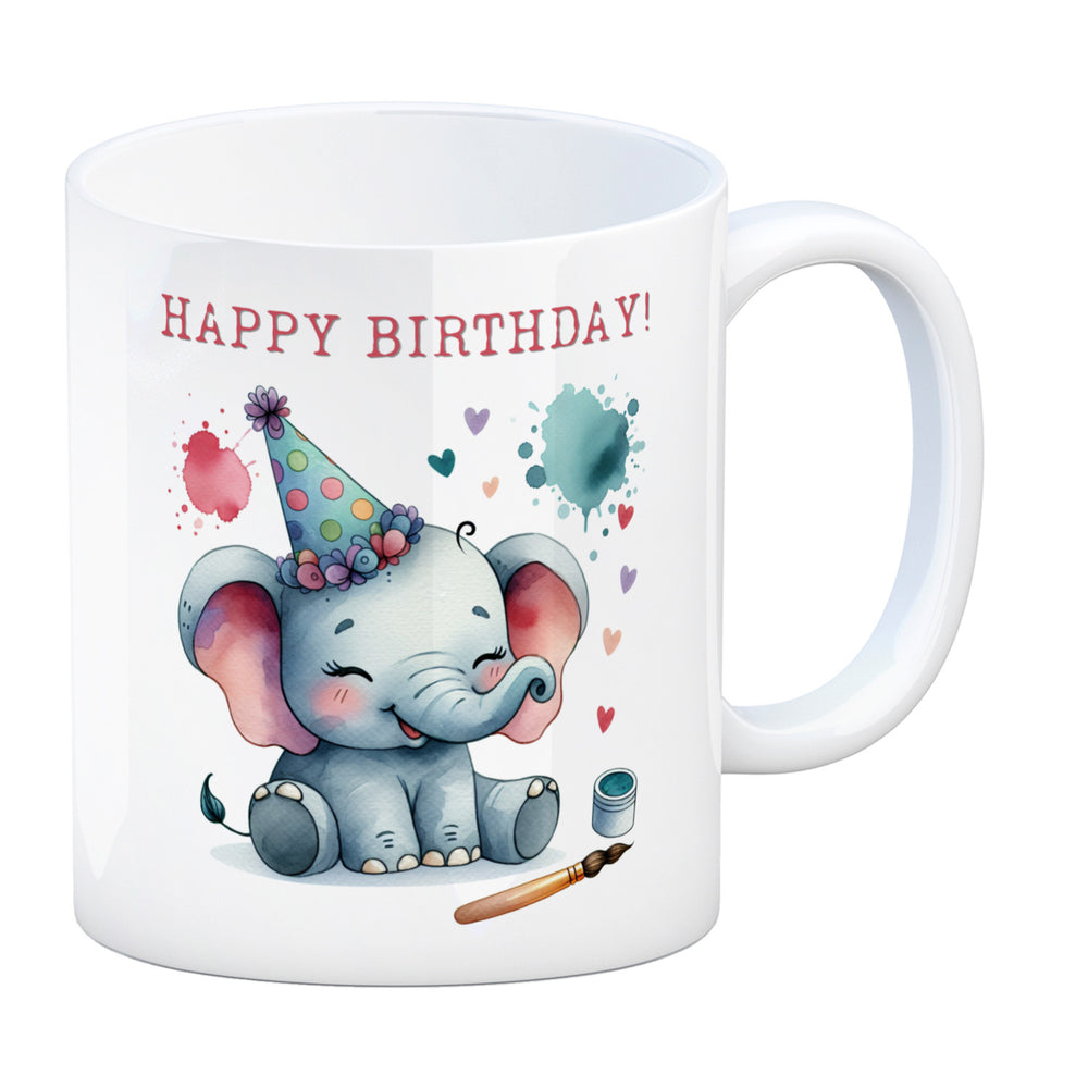 - Entdecke den "Happy Birthday Elefant Kaffeebecher", das Meisterwerk für Morgenmuffel mit Geburtstagsstimmung! Stell dir vor, wie die süße Elefantengrafik mit festlichem Hut und bunten Herzen deinen Tag von 0 auf 100 zaubert – ein Augenschmaus zu deinem Morgenkaffee!