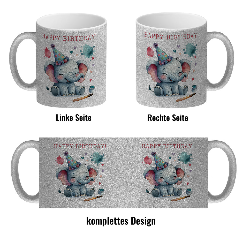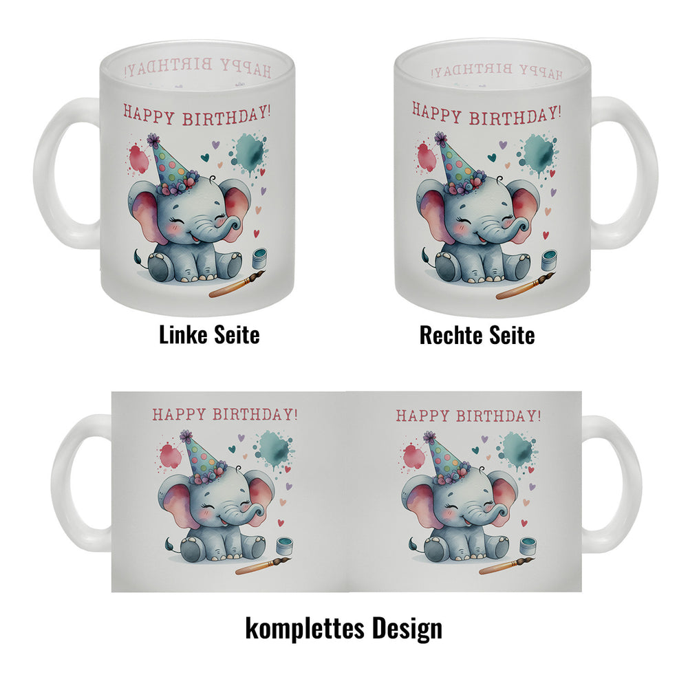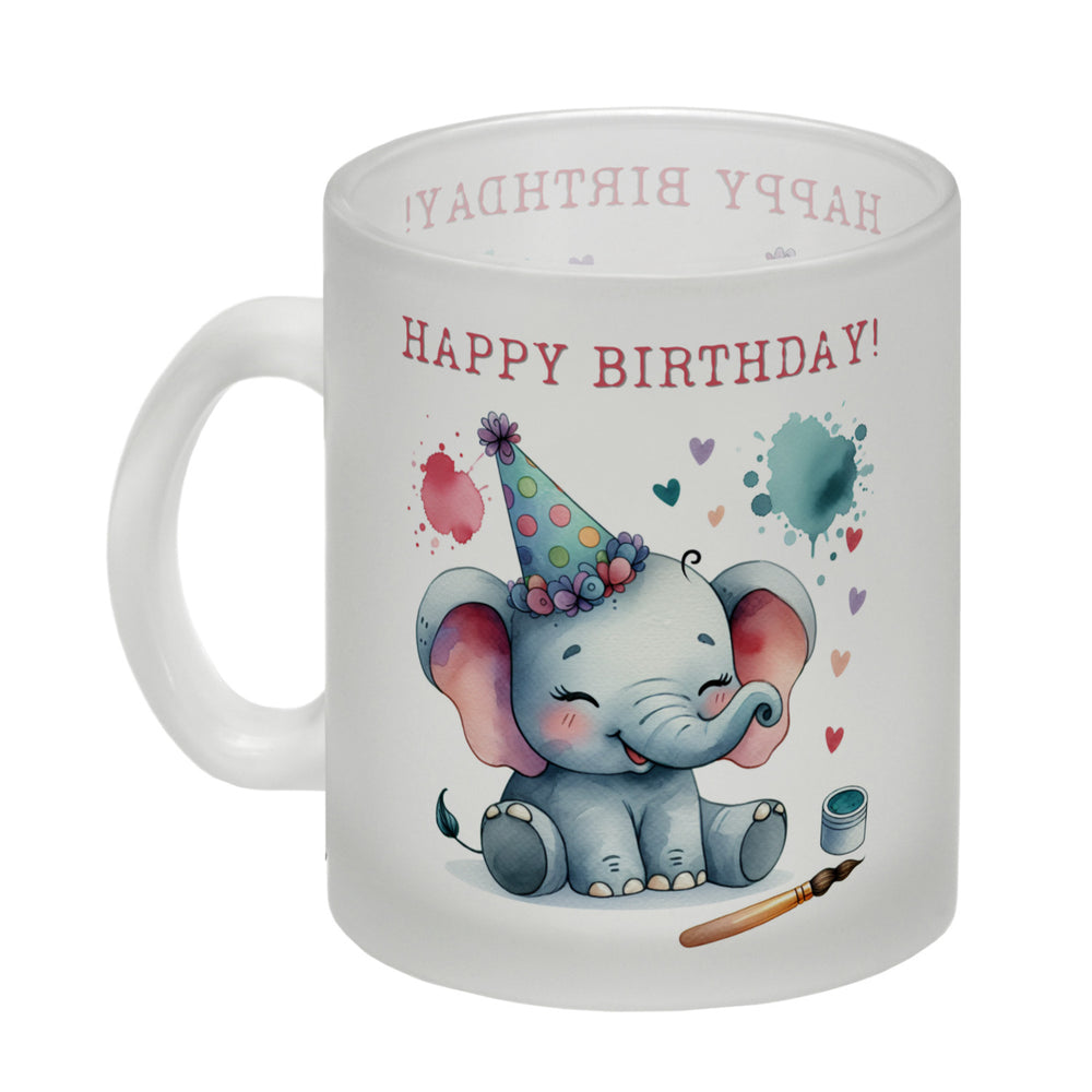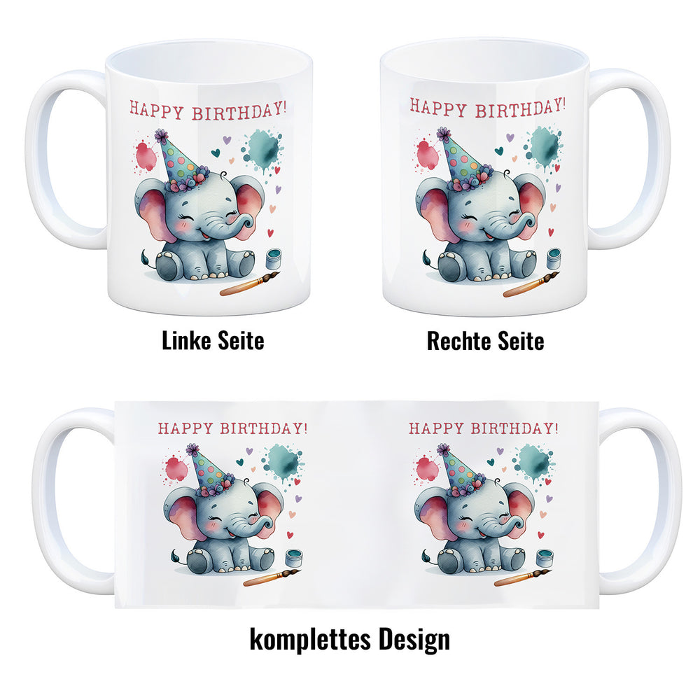 - 1x Happy Birthday Elefant Kaffeebecher in der gewählten Ausführung