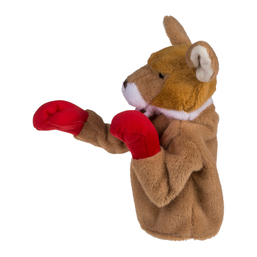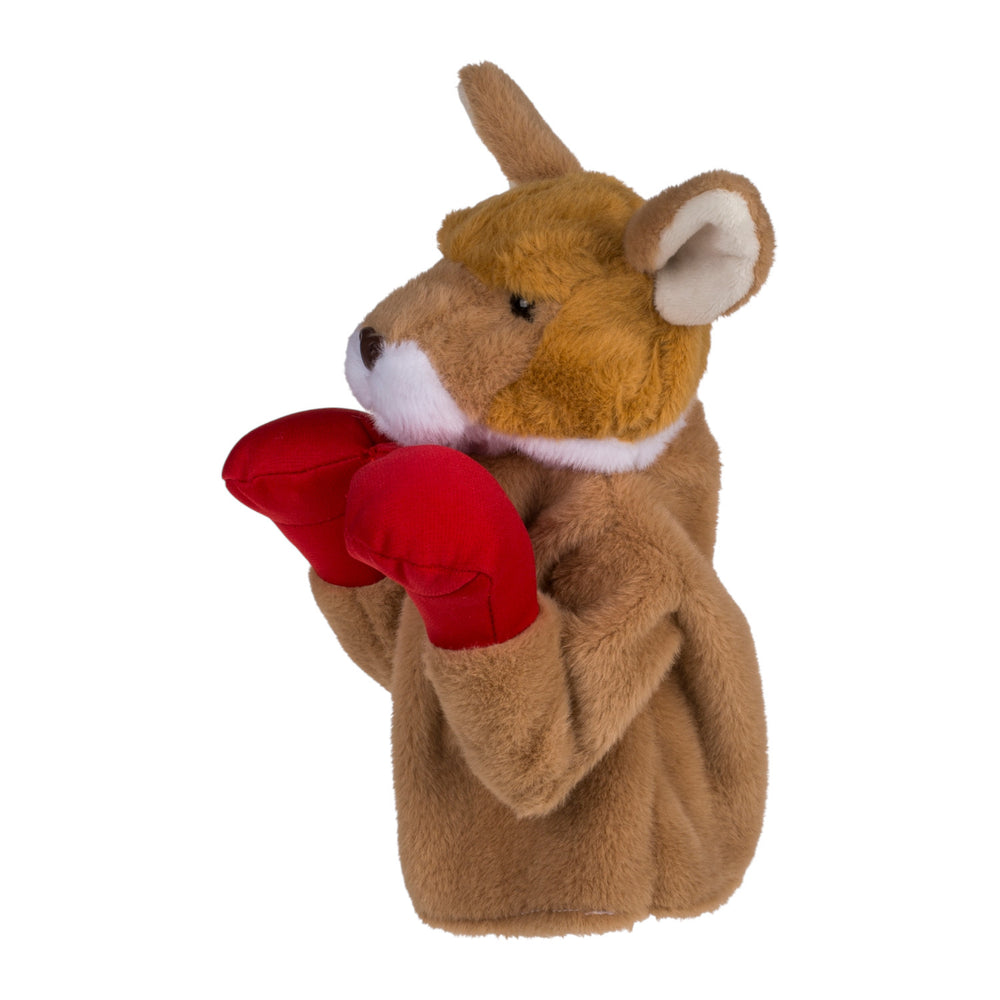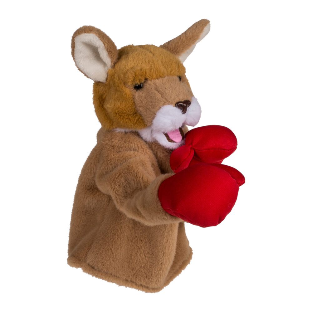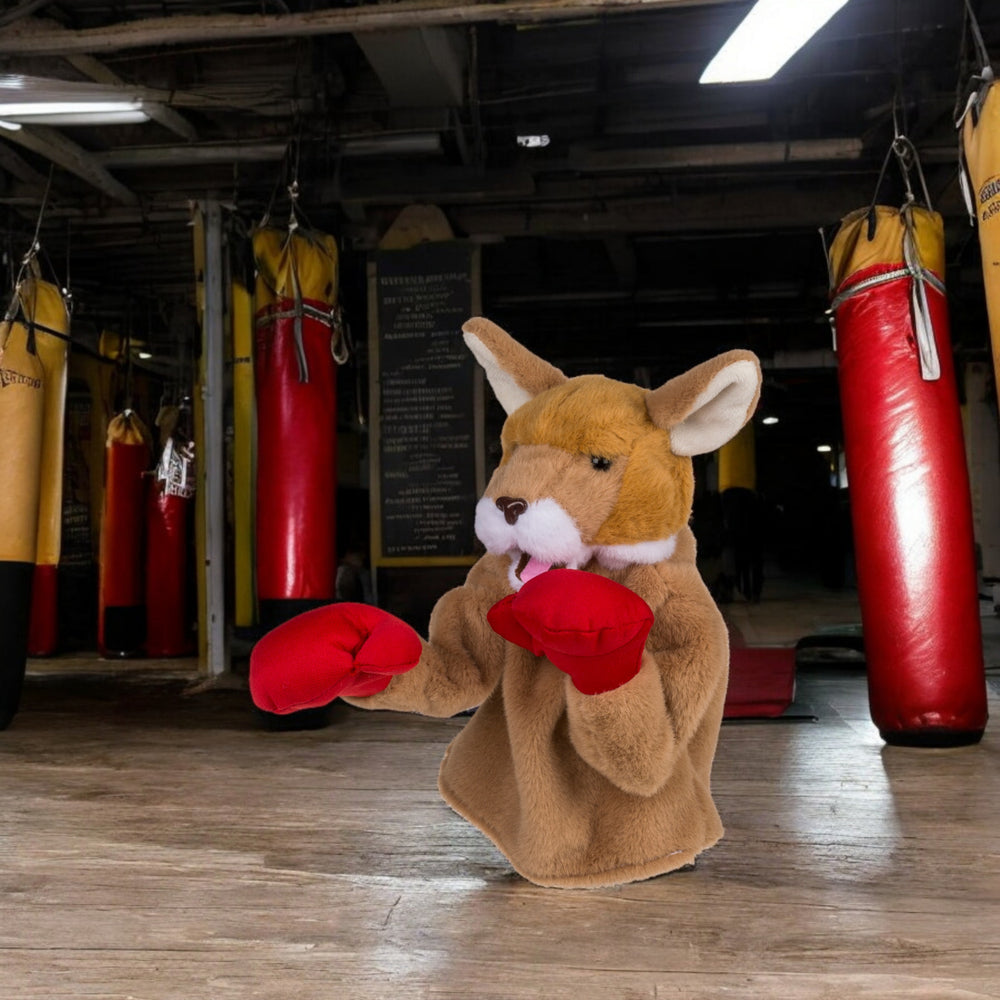 - Das Känguru-Spielzeug ist eine innovative Handpuppe, die Sie über Ihre Hand ziehen. Mit einem Griff und zwei Hebeln steuern Sie die mächtigen Boxarme des Kängurus. Dank der roten Boxhandschuhe und der eingebauten Sounds wird jeder Boxkampf zum echten Erlebnis. Das weiche Polyester sorgt dabei für kuscheligen Komfort.