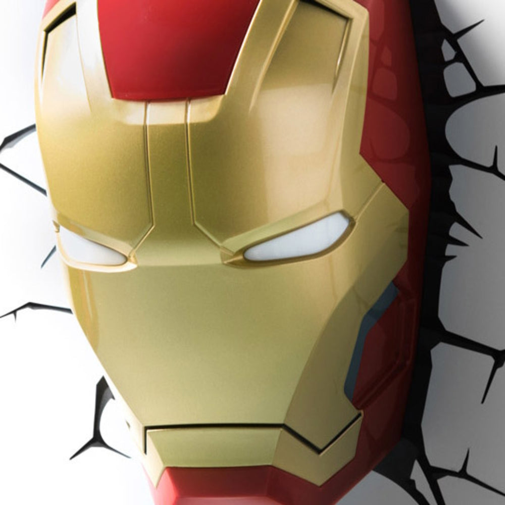 • Diese coole Wandlampe hat das Design der Iron Man Maske und sieht aus, als würde Tony Stark höchstpersönlich durch die Wand brechen. Die LED-Lichter sorgen für ein angenehmes, energiesparendes Licht und der coole Wandsticker verstärkt den 3D-Effekt. Einfach genial!
