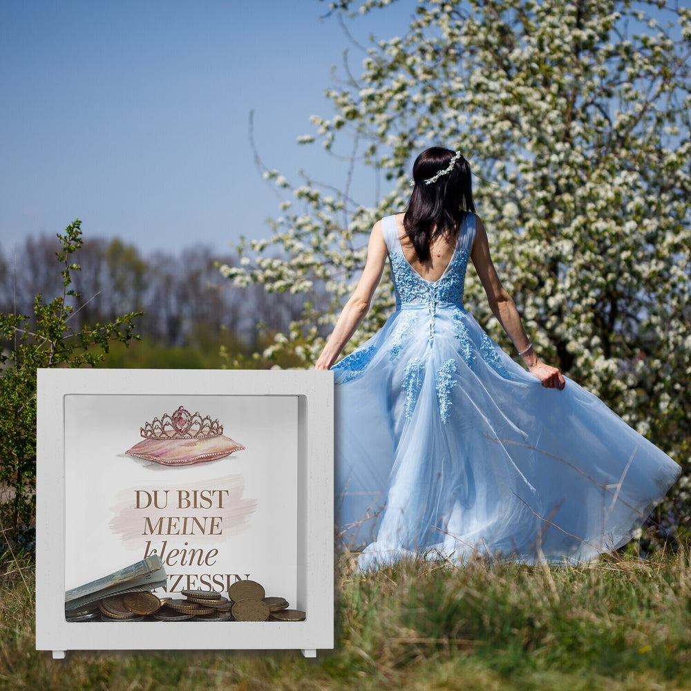 - 1x Meine kleine Prinzessin Spardose Tiara auf Kissen in der gewählten Ausführung