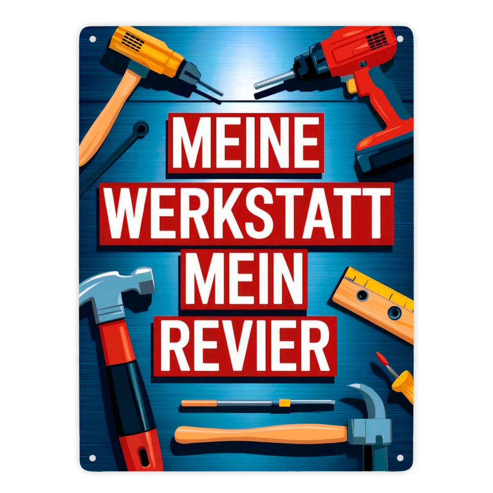 - Mach Platz, hier herrscht der Heimwerker! Unser MEINE WERKSTATT MEIN REVIER Metallschild schreit förmlich nach Tatendrang und Abenteuer in der Werkstatt. Perfekt für alle DIY-Helden, die ihren kreativen Spielplatz markieren wollen.
