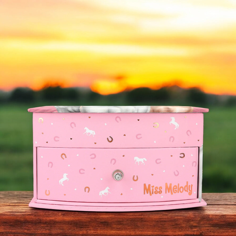 - Jetzt kaufen und Freude schenken! Das Miss Melody Pferde Schmuckkästchen ist das perfekte Geschenk für Geburtstage, Weihnachten oder einfach als kleine Überraschung. Verschenken Sie ein Stück Mode und Hobby in einem, das jeden Tag aufs Neue begeistert.